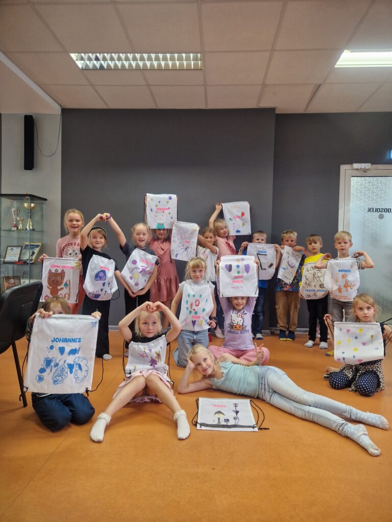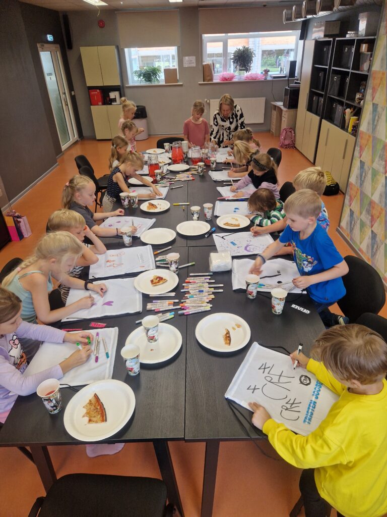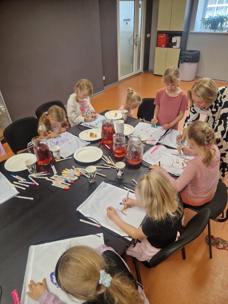 Mul oli lastele planeeritud vahva töötuba, kus iga laps sai joonistada ja kujundada endale ise koti – nöörkoti ehk sussikoti. Igaüks joonistas kotile täpselt seda, mida ise soovis, ja tulemused tulid uskumatult erilised ning ainulaadsed!