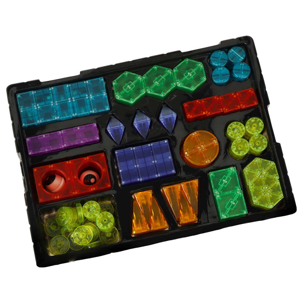 Erinevate kujude ja värvidega klotsid annavad teie lapsele võimaluse luua mitmeid konstruktsioone – alates lihtsatest tornidest kuni keerukamate 3D-figuurideni. Tänu sisseehitatud magnetitele on klotsidega ehitamine lihtne ja lõbus. Helendavad elemendid muudavad iga konstruktsiooni muljetavaldavaks, eriti pimedas.