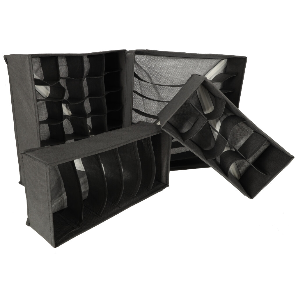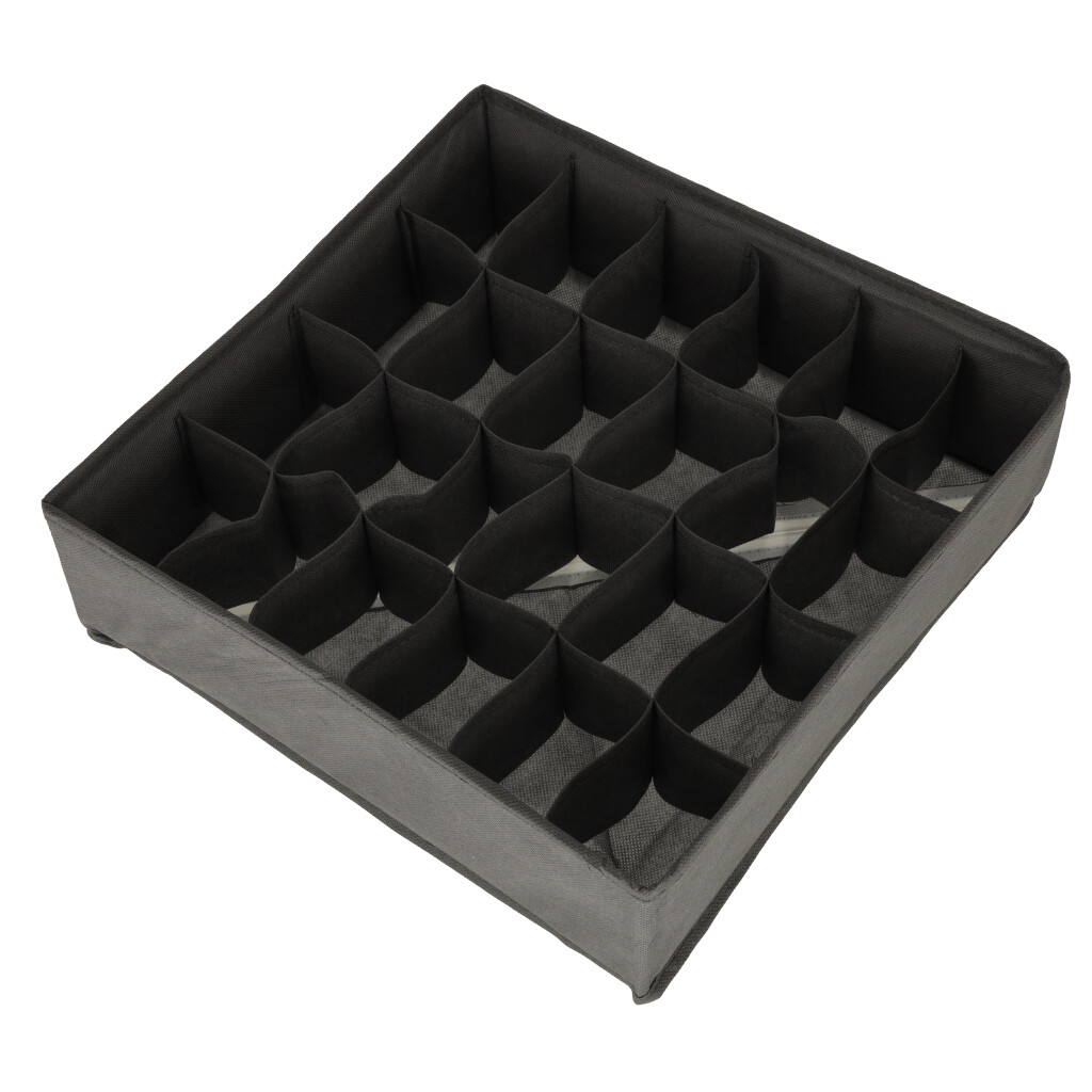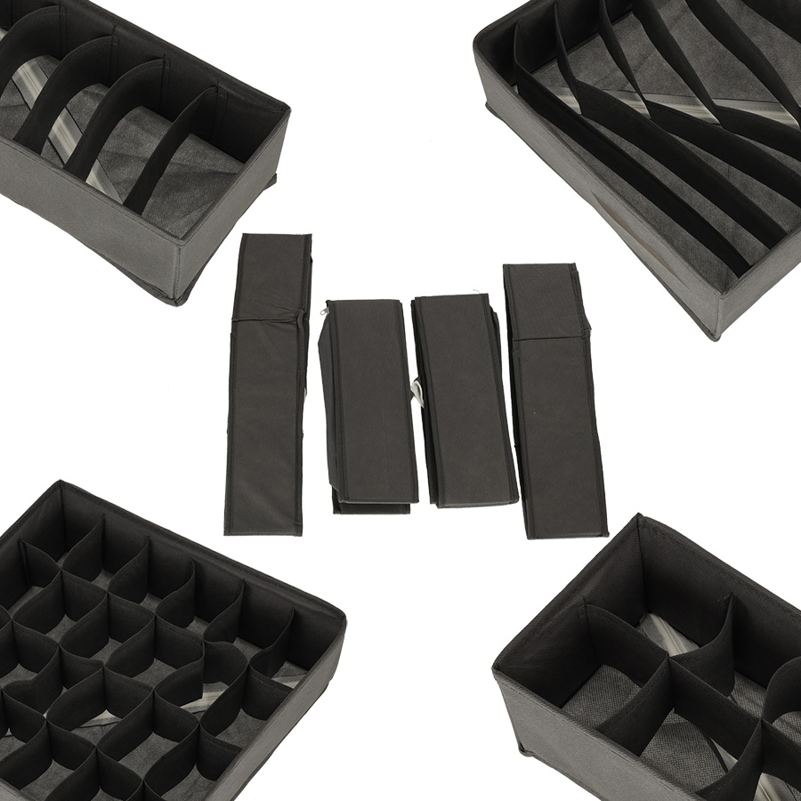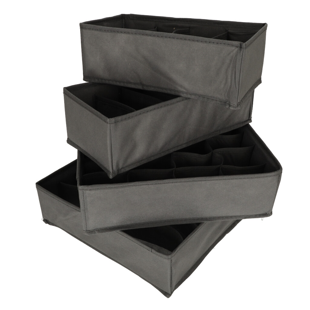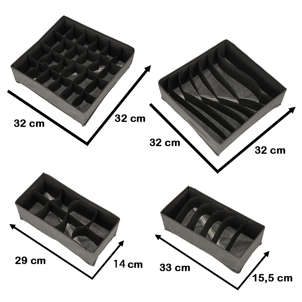 Aluspesuorganisaator aitab sul sahtlite segadusega hakkama saada. Neli erineva arvu lahtritega konteinerit on suurepärane võimalus hoida sokid, aluspesu ja muud aksessuaarid eraldi!