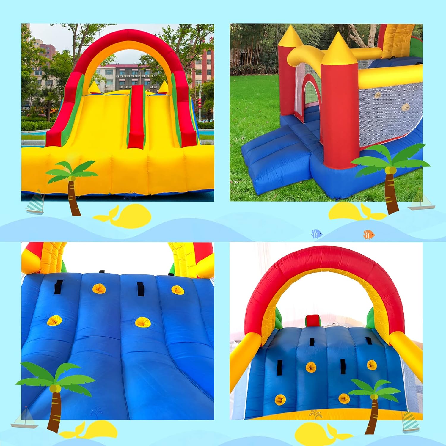 See täispuhutav batuutloss pakub lastele aktiivset ja põnevat ajaviidet. Hüppamine, ronimine ja liuglemine arendavad laste tasakaalu, koordinatsiooni ja liikumisrõõmu. Suur mänguala võimaldab mitmel lapsel korraga koos mängida ning muudab selle ideaalseks nii koduaias kui ka toas kasutamiseks.