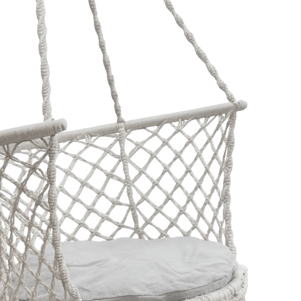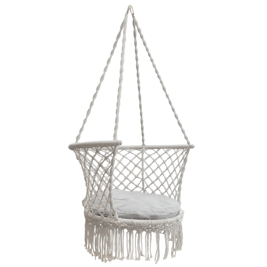 Kiigel saab istuda püsti või türgi – tasakaalustatud disain vähendab kukkumisohtu. Klassikaline värviskeem koos boho disainiga sobib suurepäraselt moodsasse ja maalähedasesse keskkonda.