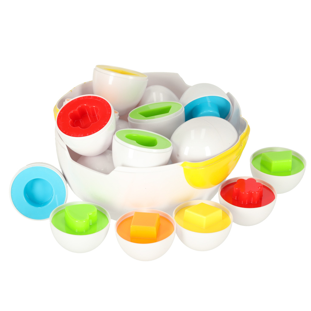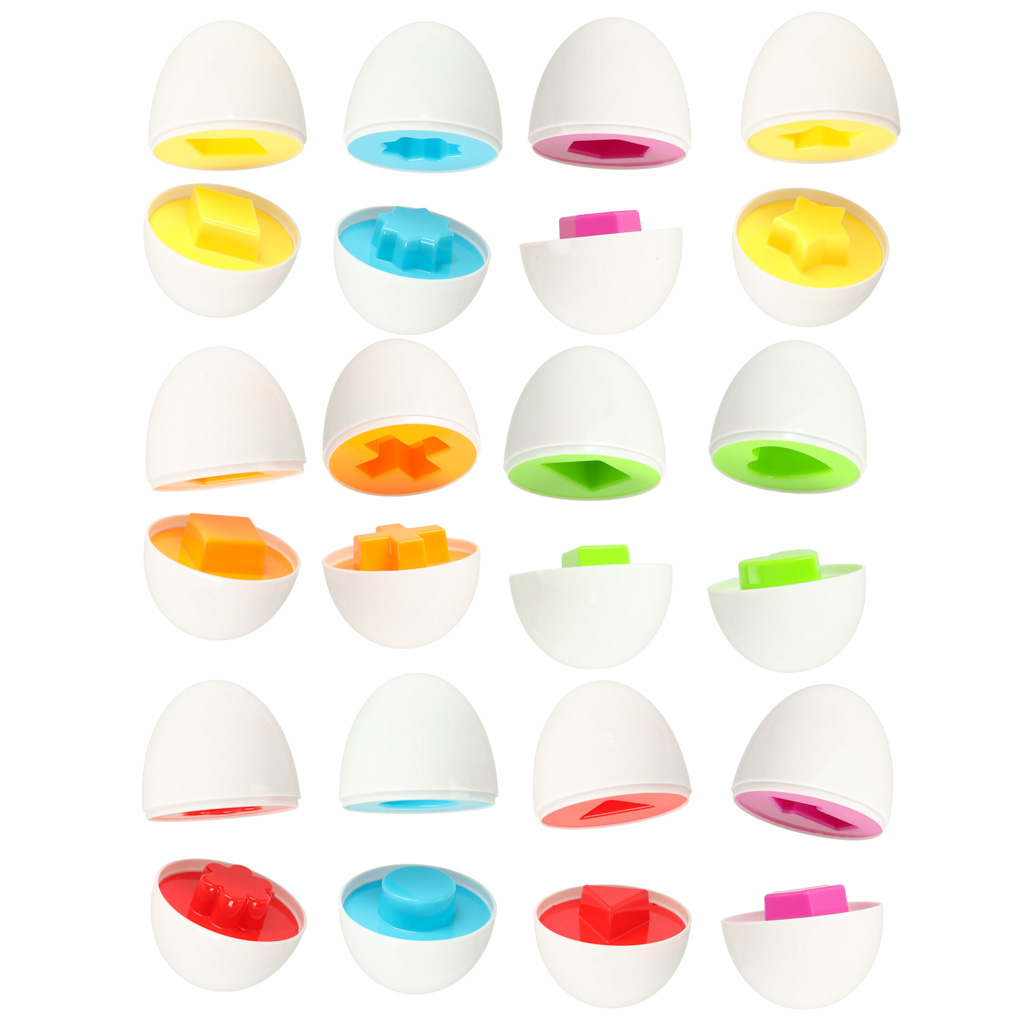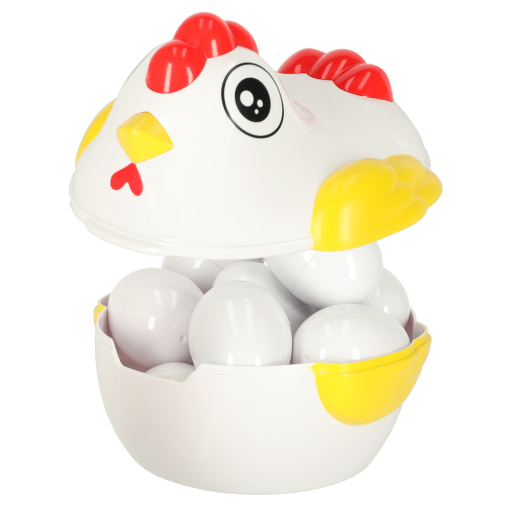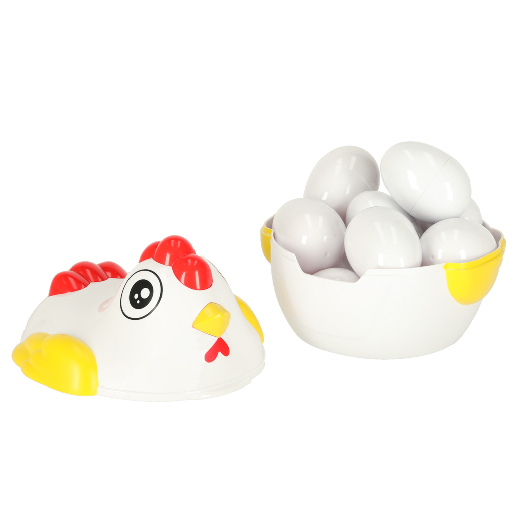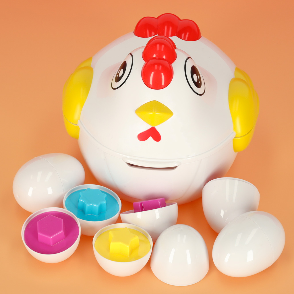 Kana sisse on peidetud 12 plastmassist muna, mida saab avada ja uuesti ühendada. Iga muna sees on kuju, mis sobib ainult ühele kindlale poolele. Lapse ülesanne on munad laiali ajada, avada need ja leida õiged paarid, sobitades neid kuju ja värvi järgi.