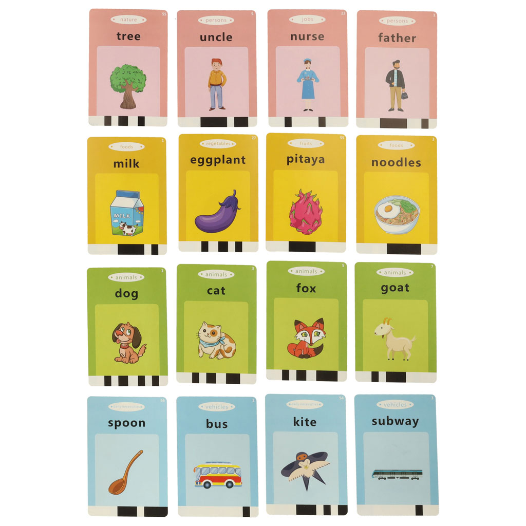 Igal kaardil on kaks eeltäidetud sõna, üks kummalgi pool, ja vastav joonis nende tähenduse mõistmiseks. See stimuleerib nii lapse nägemist kui ka kuulmist, nii et see sobib kindlasti kõige tõhusamaks õppimisviisiks igale väikelapsele.