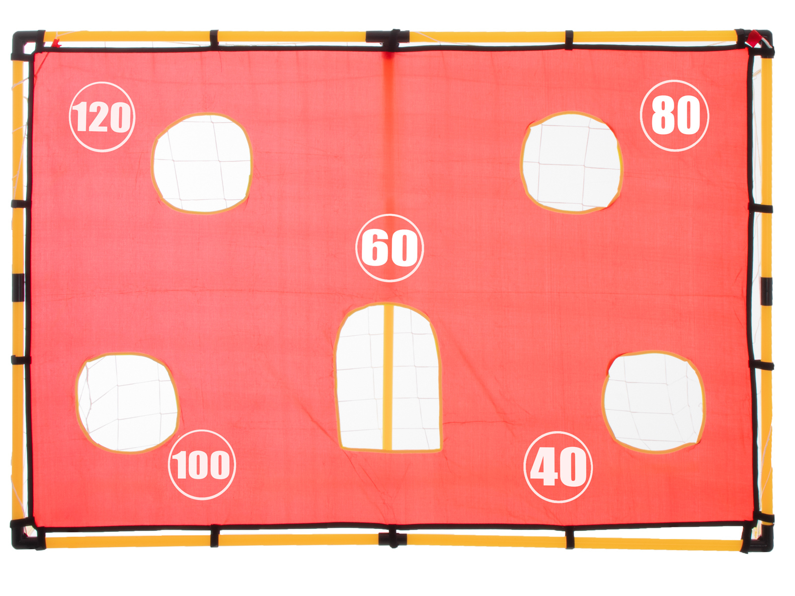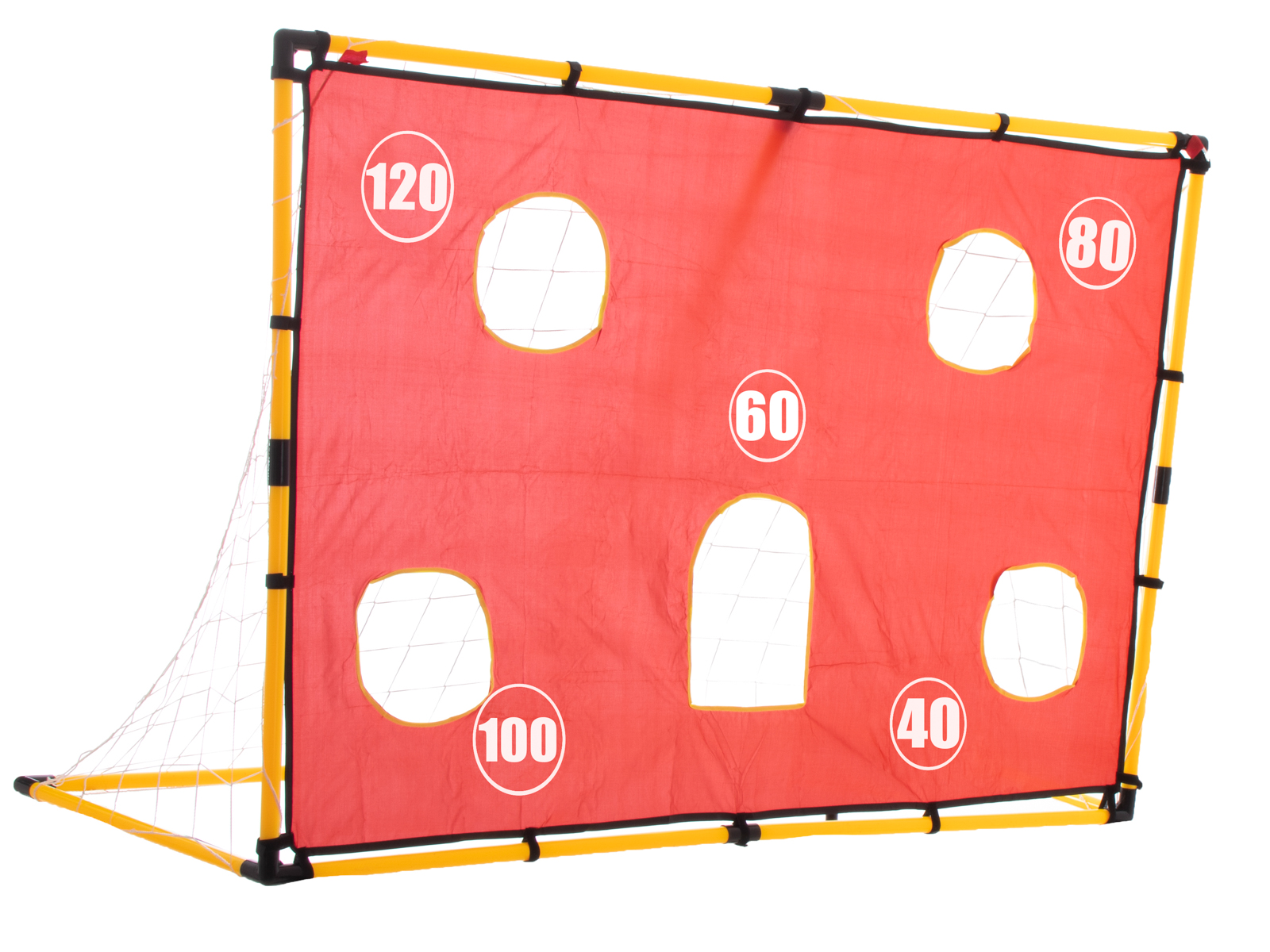 Suur värav koos matiga, kuhu on välja lõigatud augud, võimaldab teil harjutada täpseid väravalööke, ilma et peaksite kaasama väravavahti.