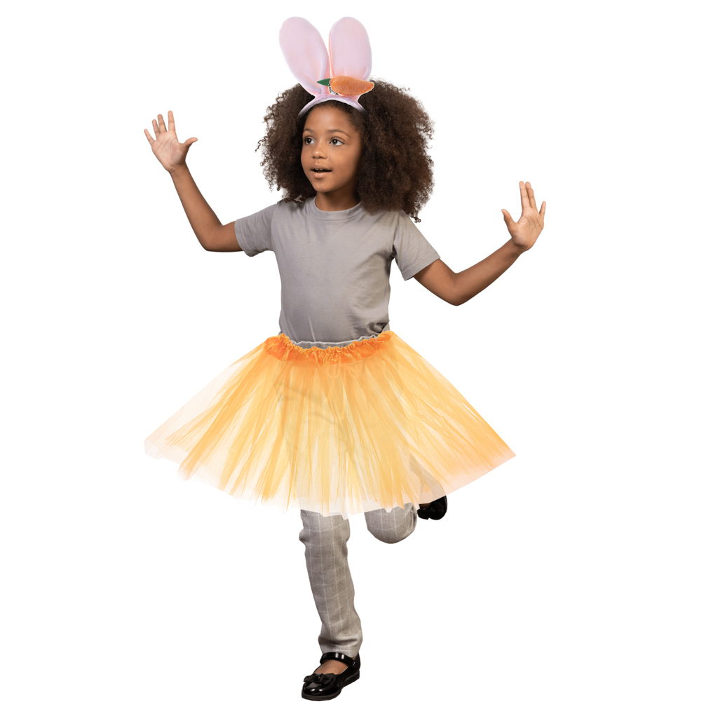 Komplekti kuulub pehmete kõrvade ja maitsva porgandiga peapael, aga ka oranžist tüllseelik – teie laps saab riietuda loomaks, keda kõik nii hästi tunnevad!