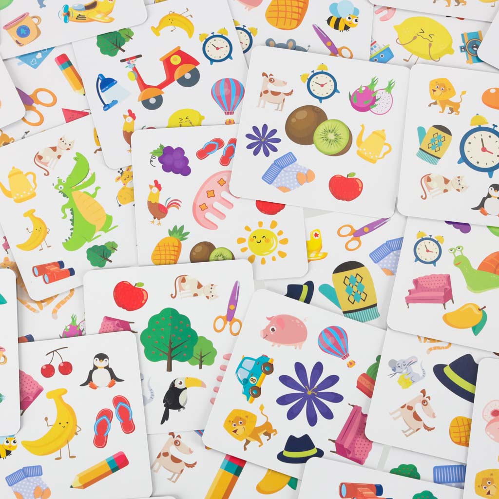 Kuigi komplektis on kuni 54 kaarti, näeb iga kaart välja erinev! Veelgi enam, kahe kaardi vahel on ainult üks ühine pilt – ja sinu ülesanne on see leida!
