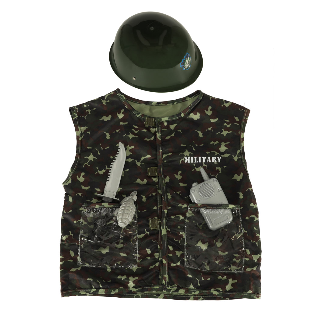Komplekti kuuluvad moromustriline vest ja militaarikiiver!