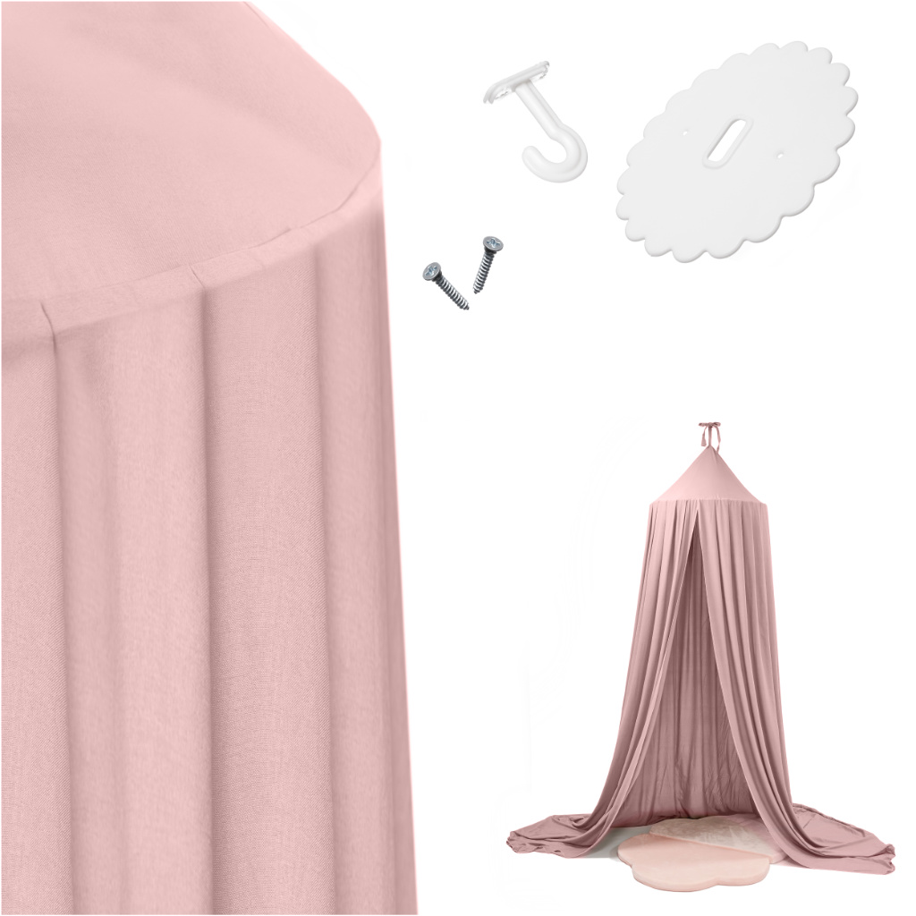 Baldachin sobib suurepäraselt ka telgiks. Sellest saab hubane peidupaik, kus leiavad peavarju pluusist sõbrad, lemmikautod, nukud või figuurid. See on ka ideaalne koht puhkamiseks, rahunemiseks ja ühise raamatu lugemiseks.