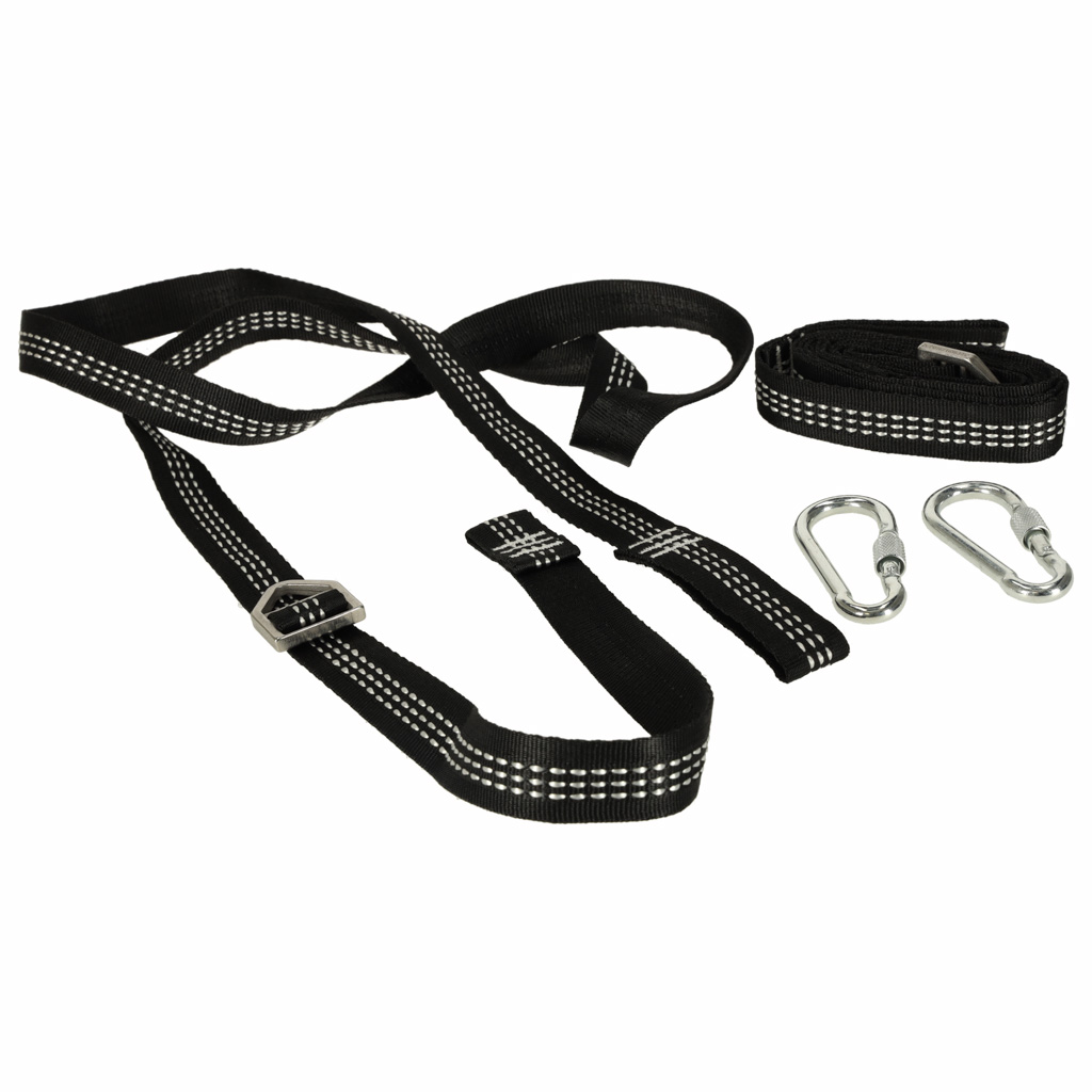 Komplekti kuuluvad kaks äärmiselt tugevat 2 meetri pikkust rihma ja kaks tugevat kinnituskonksu, mille maksimaalne kandevõime on 300 kg. Seega võite olla kindel, et riputatud iste jääb stabiilseks ja turvaliseks ka intensiivse kasutamise korral.