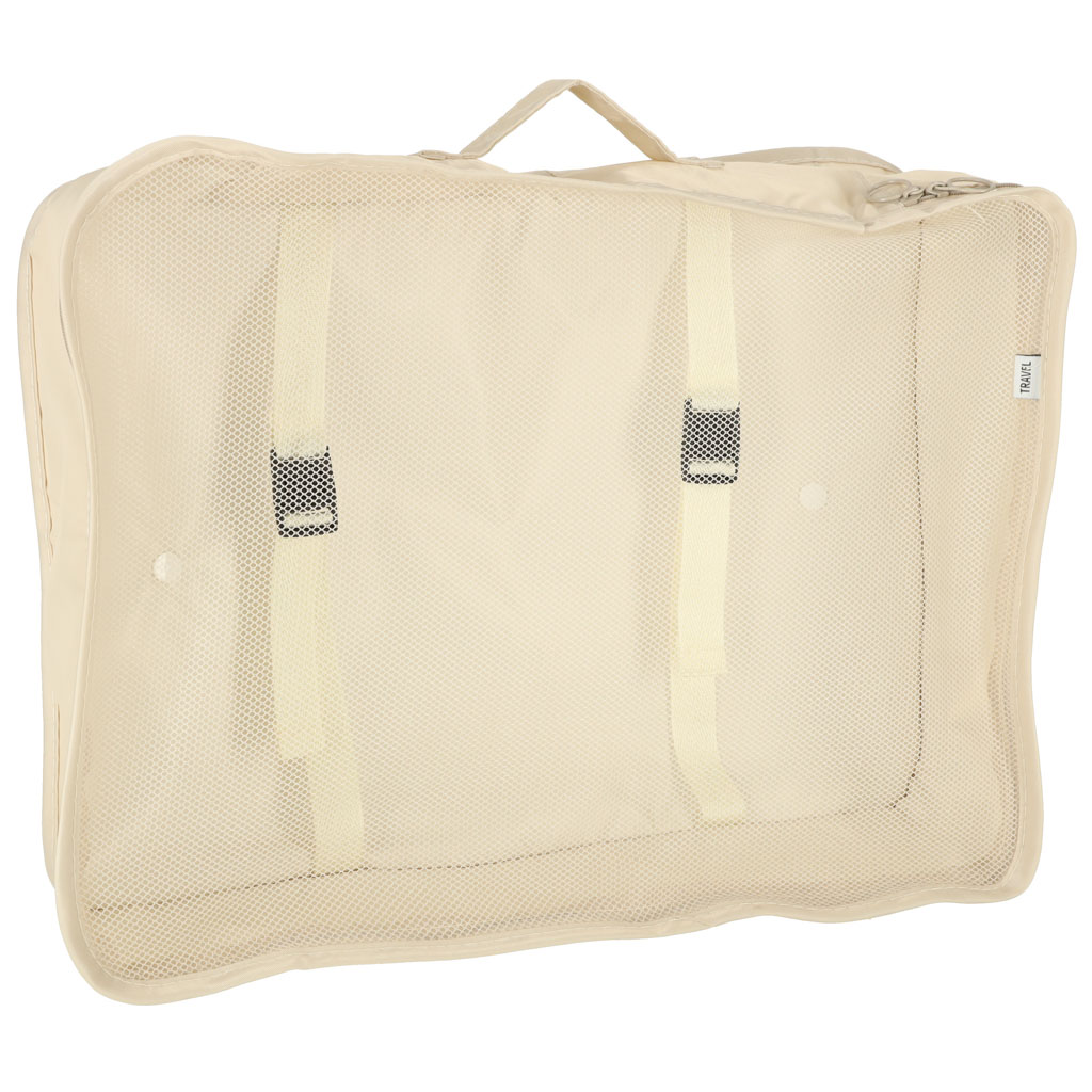 Praktiline organiseerija kohvrile – hädavajalik igal reisil! Need muudavad teie pagasi sees korra hoidmise palju lihtsamaks. Komplekti kuulub 8 erineva suurusega organiseerija – neli kuubikut riiete jaoks, üks kott, üks kingade organiseerija, üks meigikott ja üks väike kotike väikeste esemete jaoks. Kõik komplekti kuuluvad esemed on beeži värvi.