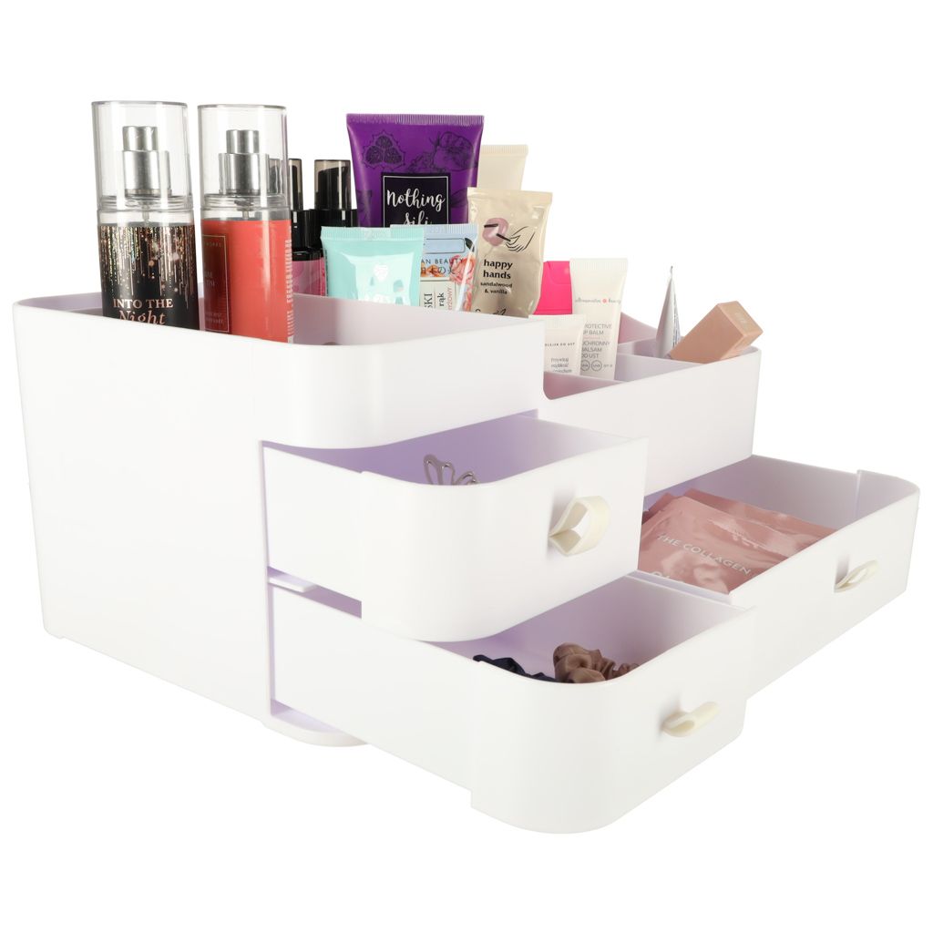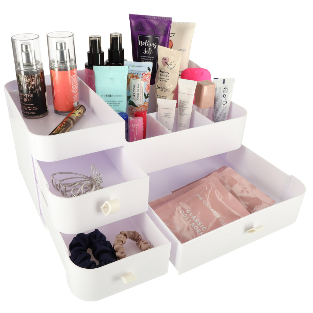 Valge organiseerija kosmeetika ja ehete jaoks:
