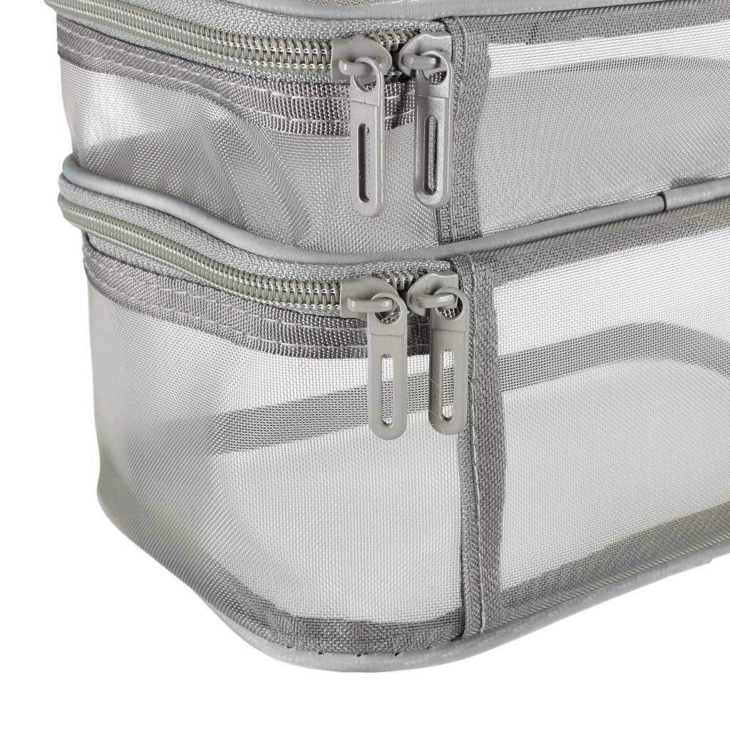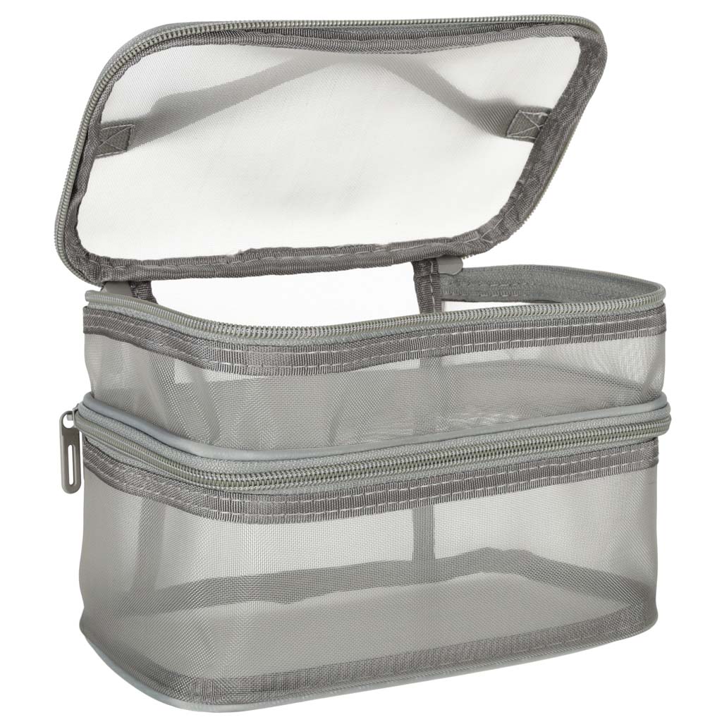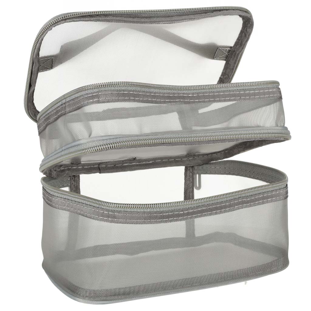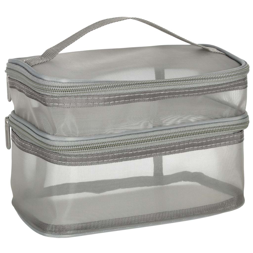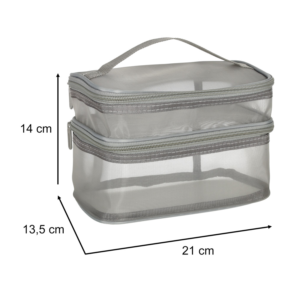 Praktiline reisikosmeetikakott – on hädavajalik igale reisile. Tänu kahetasandilisele disainile võimaldab see organiseerida oma kosmeetikatarbeid. See kinnitatakse kahepoolse tõmblukuga. See on valmistatud võrkmaterjalist, mis lihtsustab peidetud toodete leidmist. Sellel on mugavaks kandmiseks praktiline käepide.