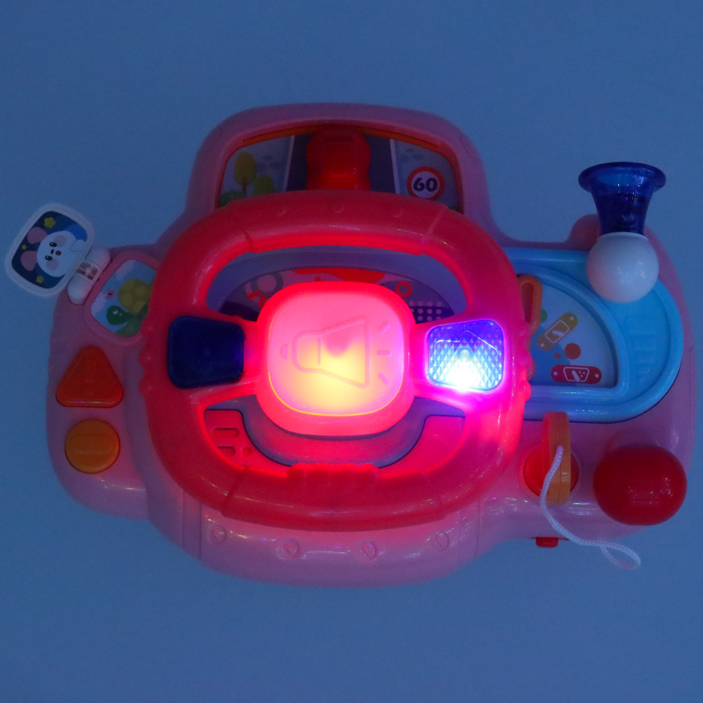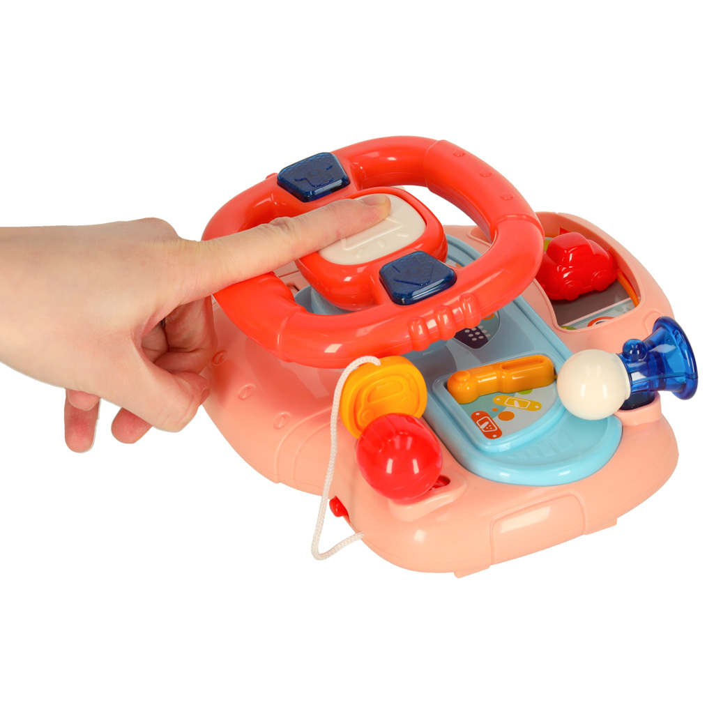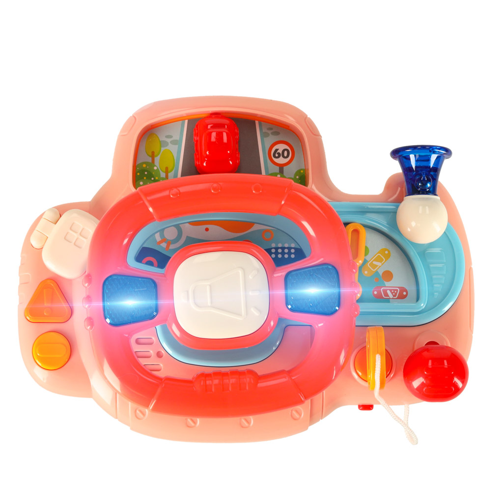 Laste interaktiivne rooliratta mänguasja simulaator muusika helid roosa