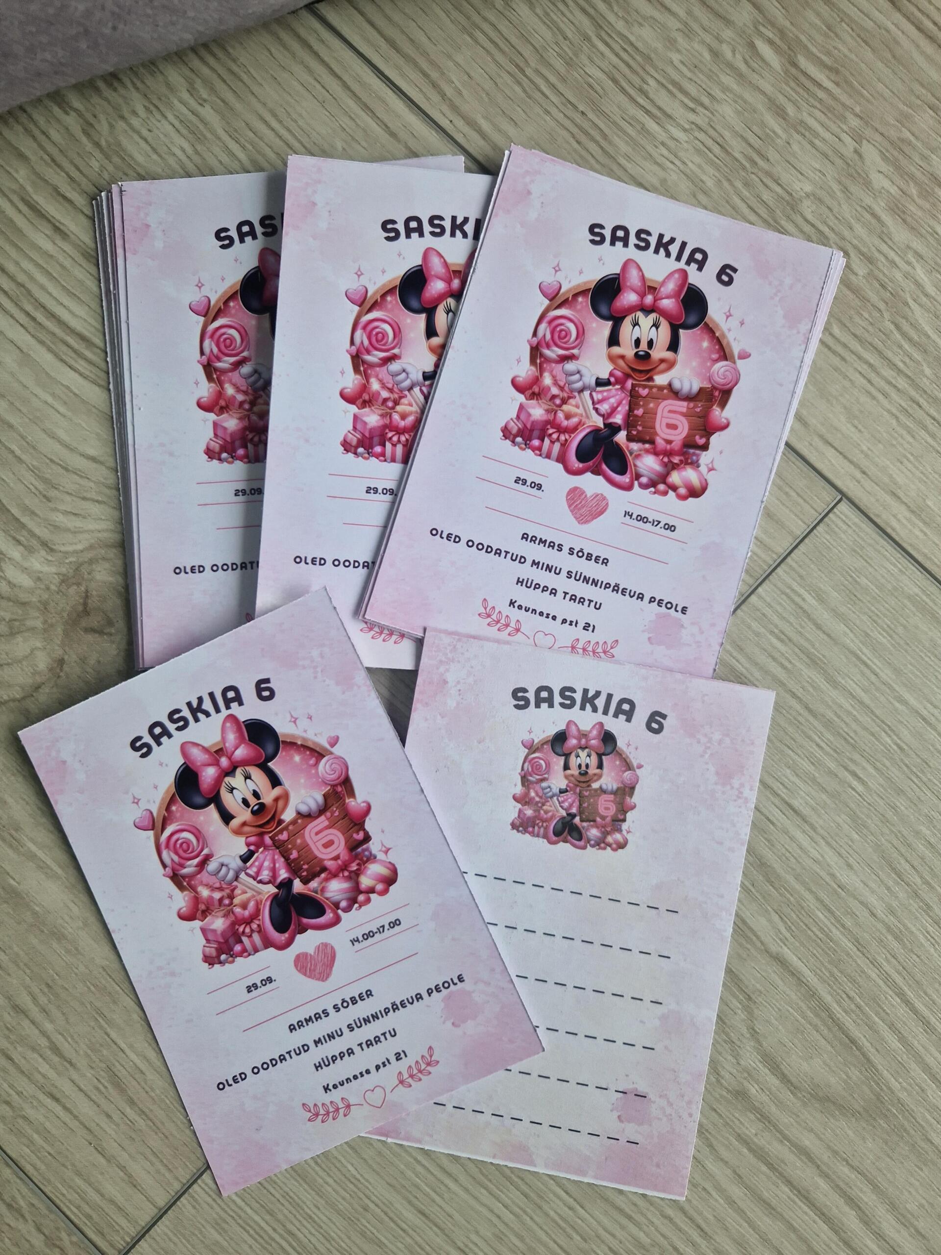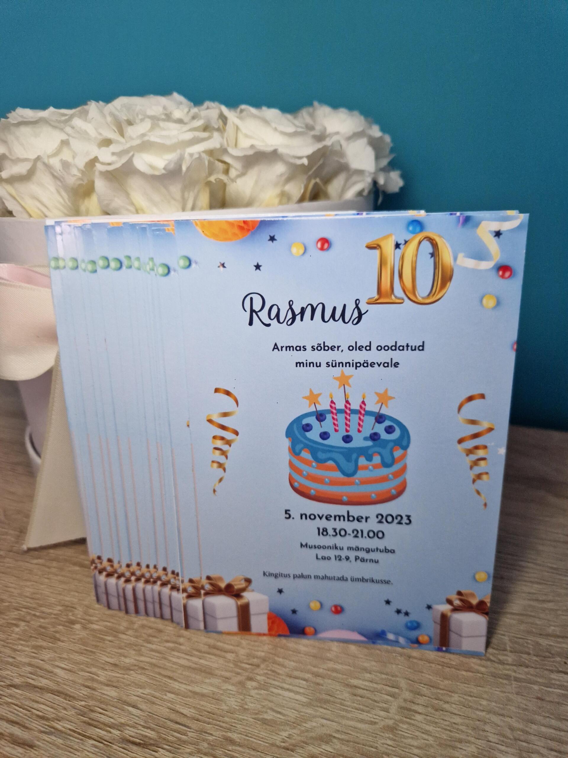 Sünnipäevakutsed on saadaval ühepoolsed või kahepoolsed. Kutse suurus 10cmX15cm.