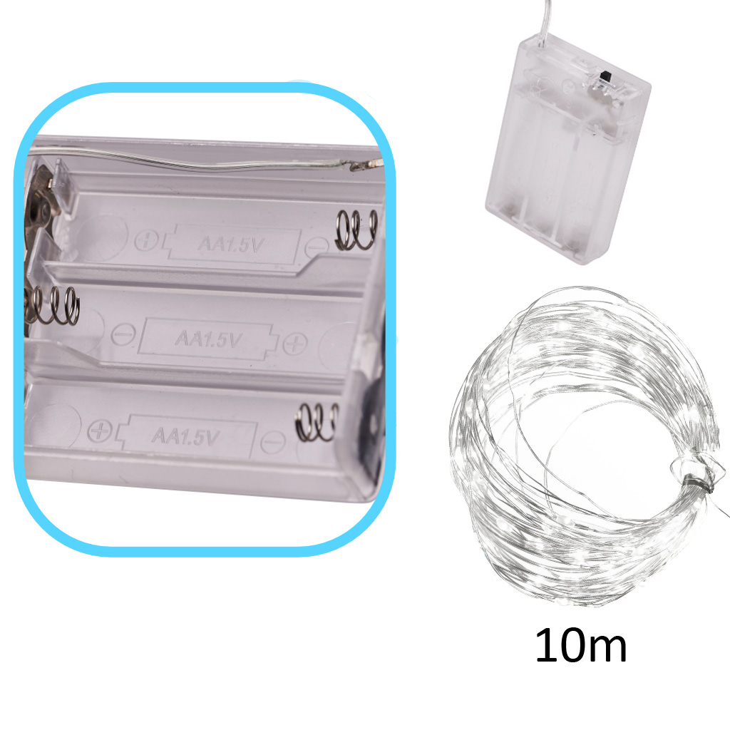 100 valgustit 10 meetri pikkusel juhtmel kaunistavad teie tuba ja valgustavad teie jõulukaunistusi. Kuna traat on õhuke, on seda lihtne nõelte vahele peita ja see muudab teie jõulupuu maagiliseks.