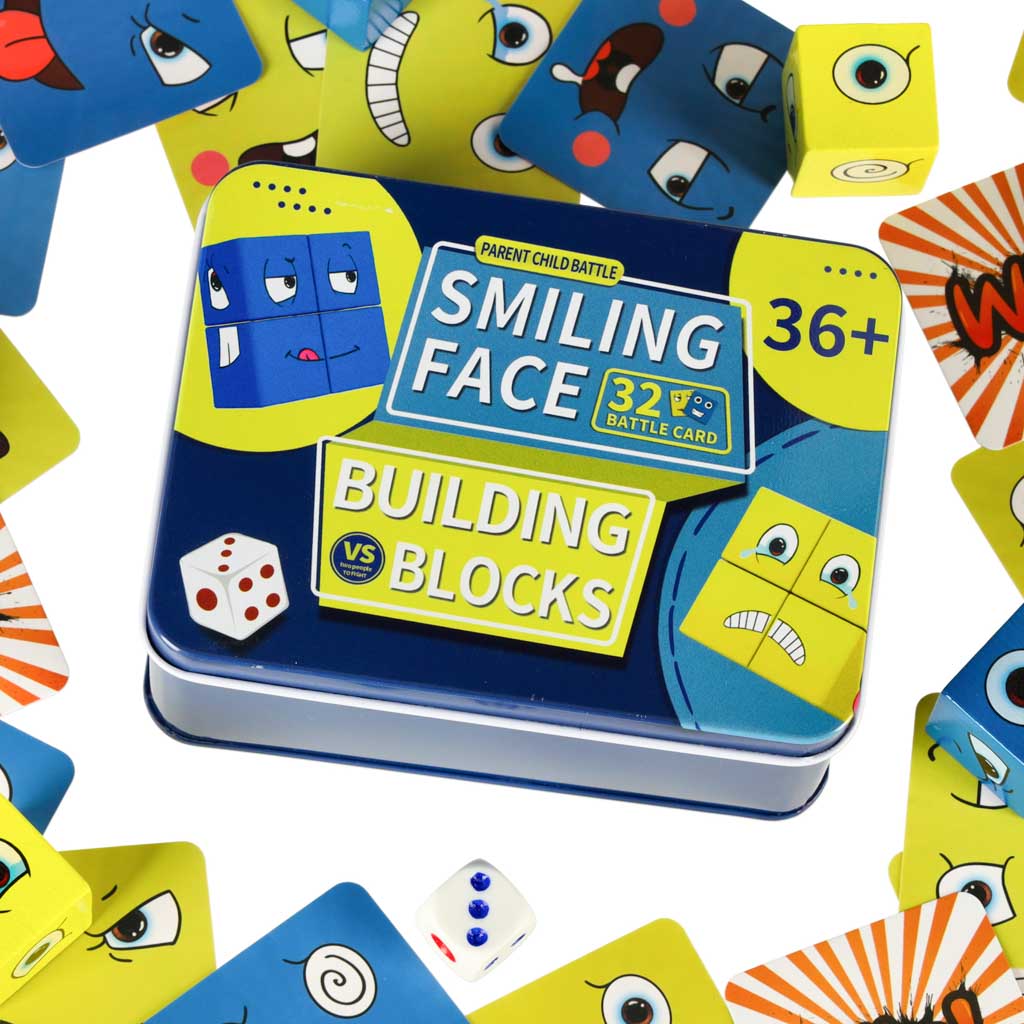 Tõmmake üks kaartidest, millel on nägu, ja korraldage võimalikult kiiresti kujutatud nägu, kasutades klotside abil.