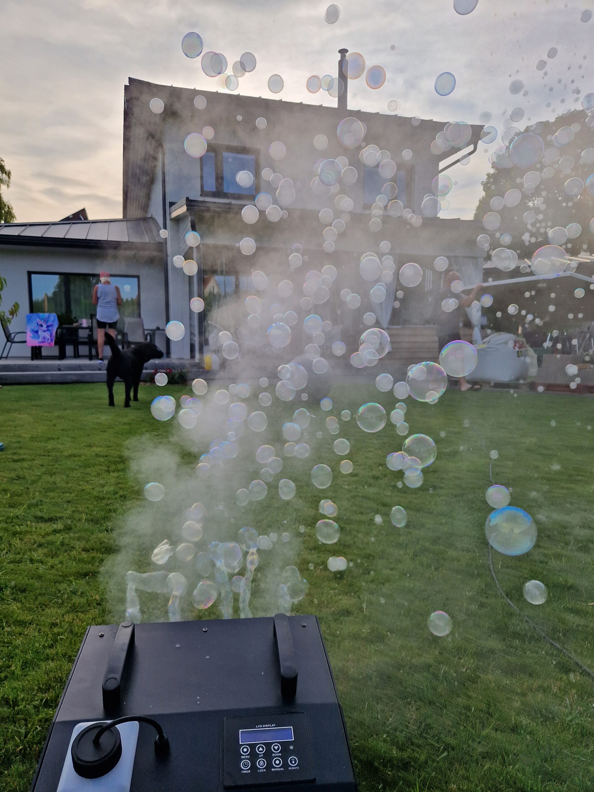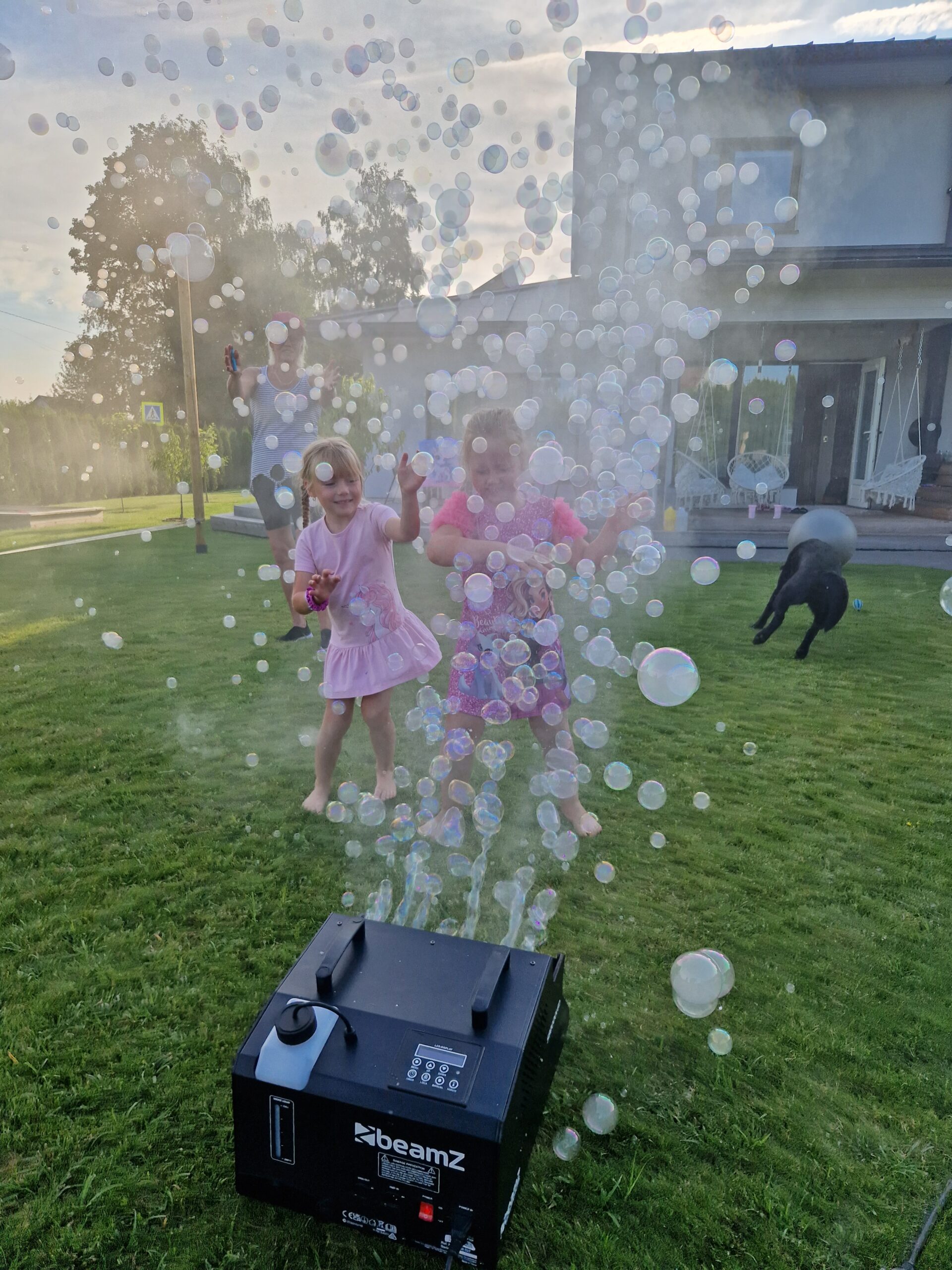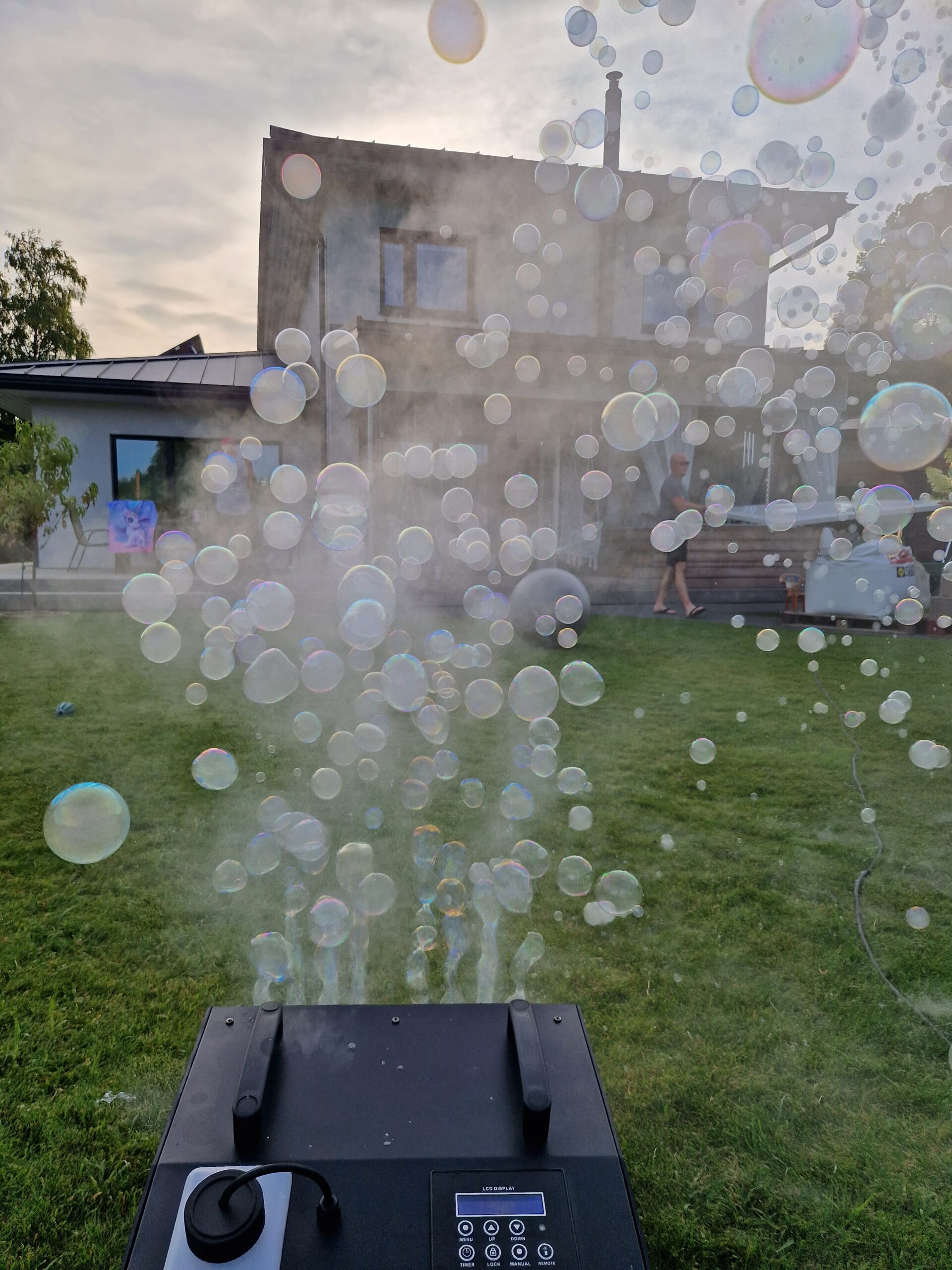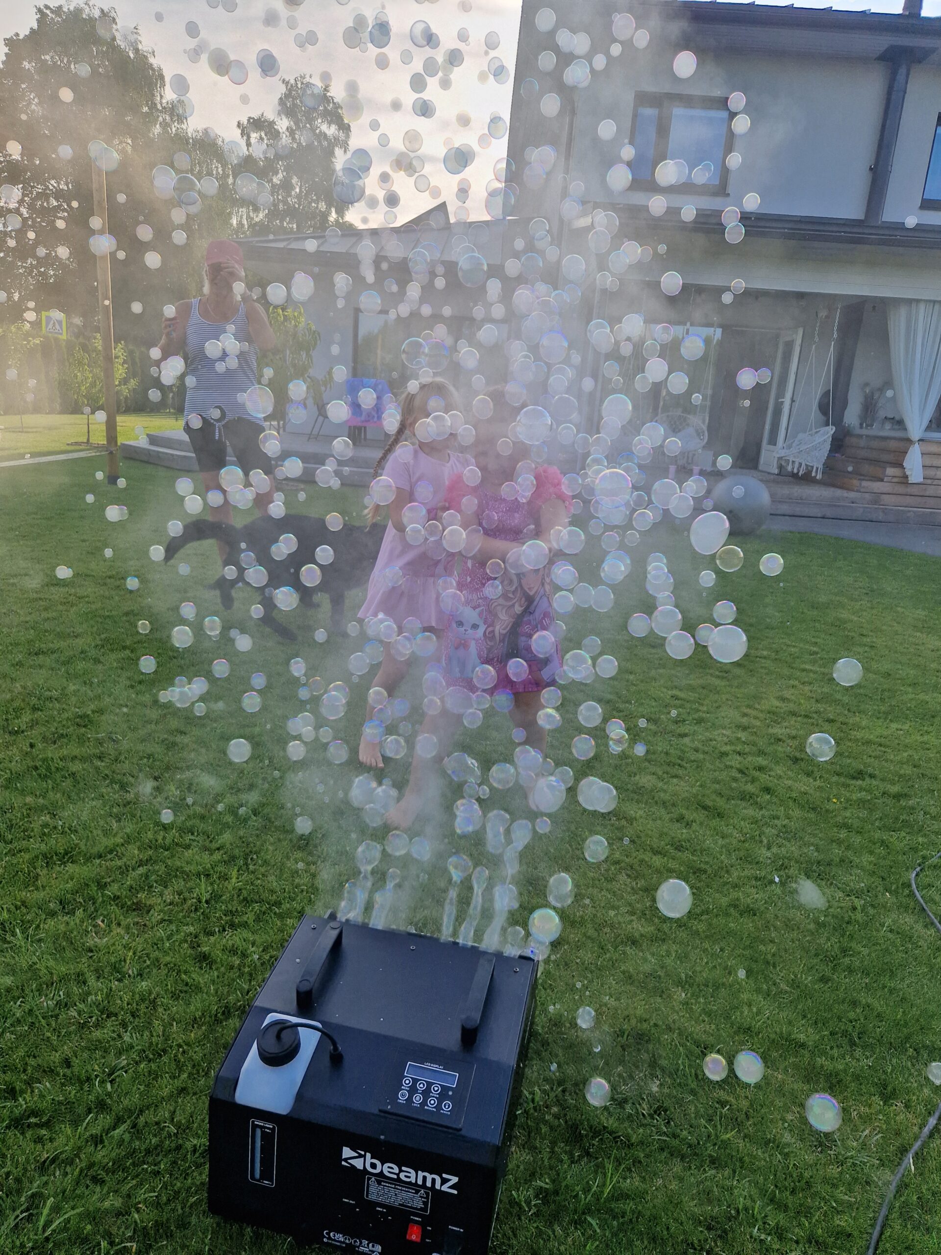 Mulli- ja tossumasin loob hetkega maagilise meeleolu – sobib ideaalselt sünnipäevadele, pulmadele, firmaüritustele, lastepidudele ja avalikele üritustele. Värviline valgus, kerge toss ja tuhanded mullid minutis muudavad iga hetke eriliseks ja fotogeeniliseks.