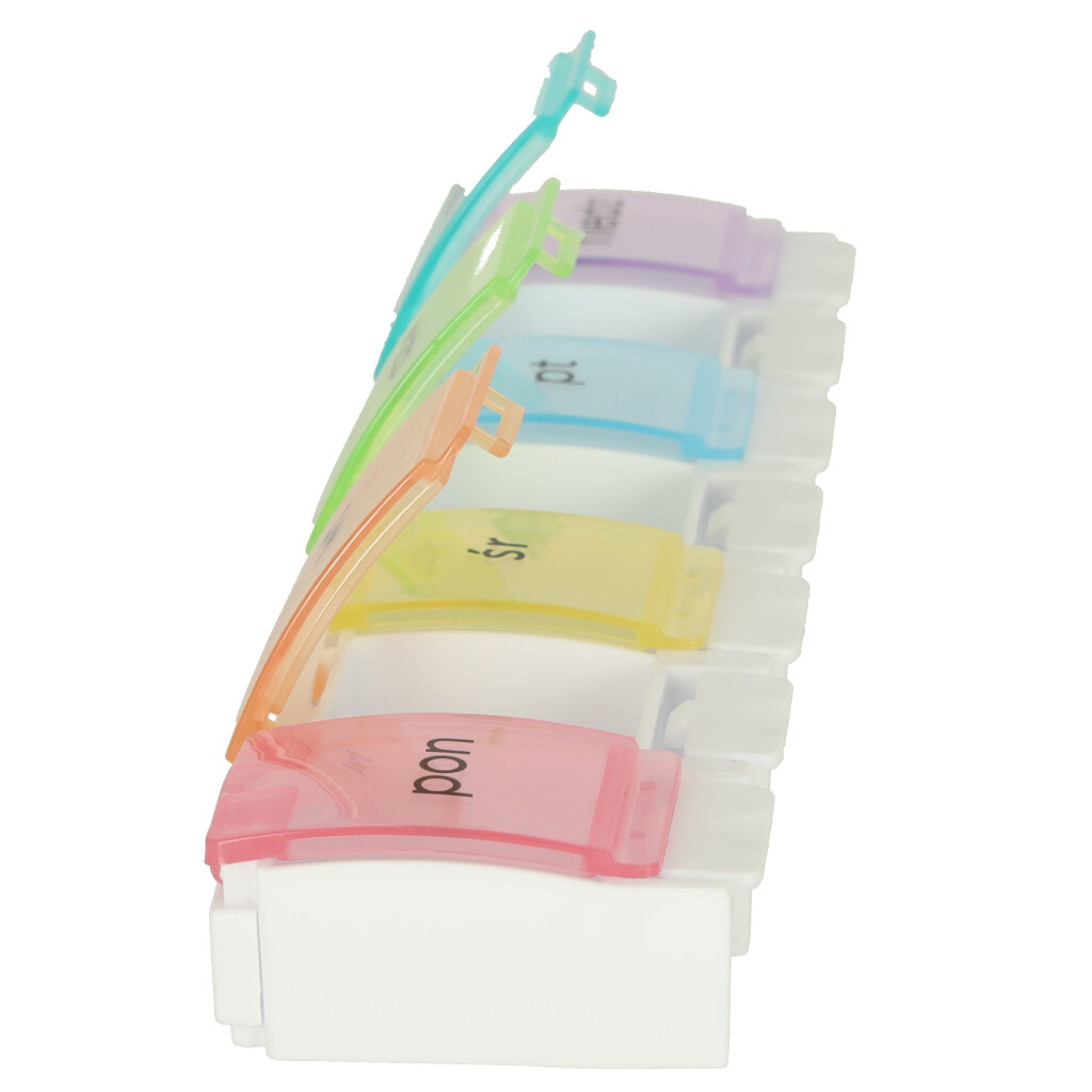 Pillide võtmine igal nädalapäeval võib vahel olla problemaatiline! Eriti kehtib see eakate inimeste puhul, kellel võivad olla kerged mäluprobleemid! Iganädalane tabletikarp aitab kahtlemata. Lihtsalt täitke kõik konteinerid nädala alguses ja teie igapäevane ravimite võtmine muutub palju lihtsamaks!