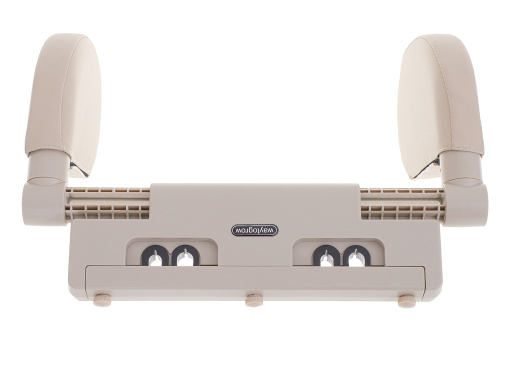 See on varustatud kahe sõltumatu käega, mida saab tõsta või langetada 180 kraadi võrra. Külgedele paigutatud pehmed padjad pakuvad reisi ajal erakordset mugavust. Te ei pea lamama ebamugavas asendis, toetades pea vastu klaasi või vööd ja riskides vigastustega. Peatugi toetab teie pead ja pehme padi võimaldab teil lõõgastuda.