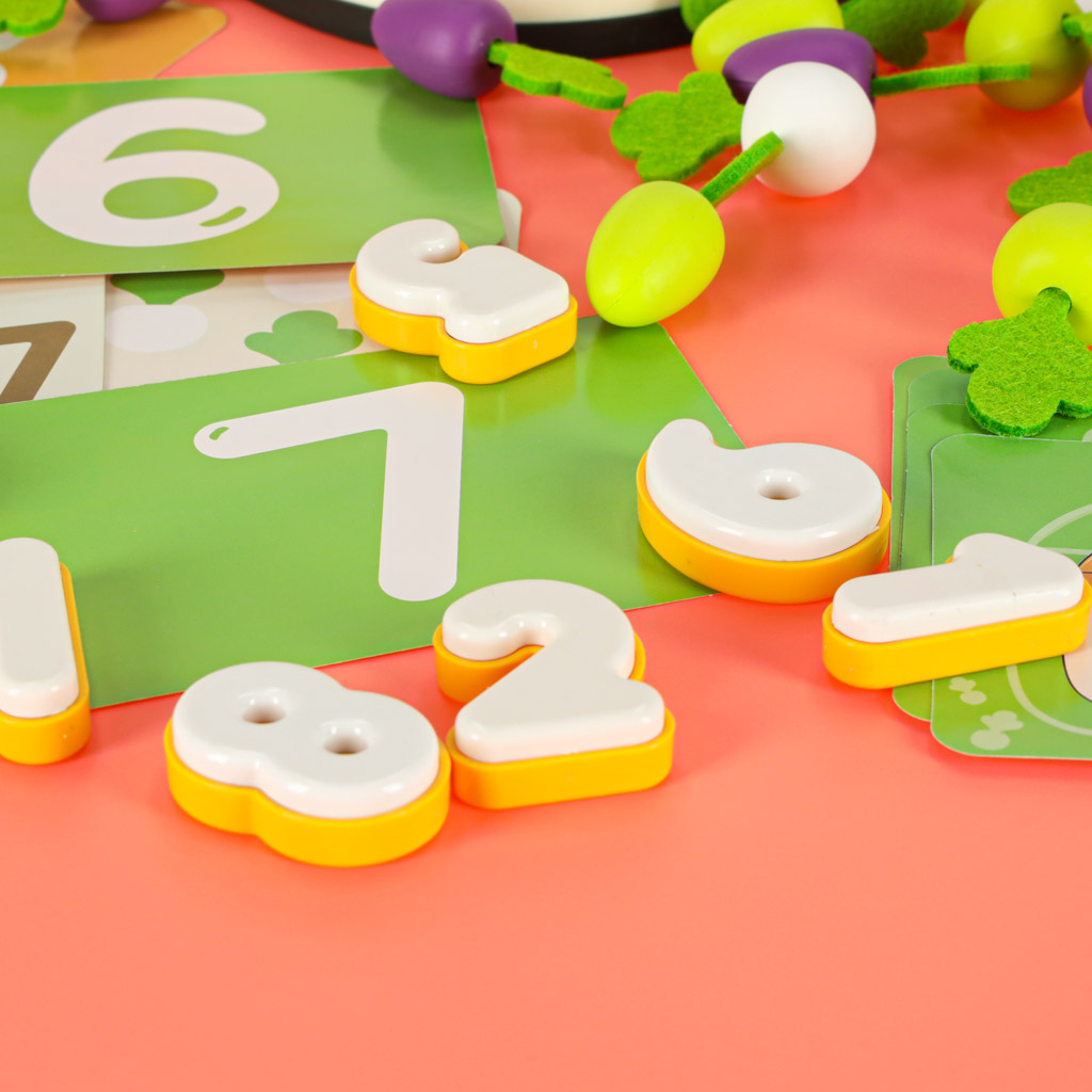 Tere tulemast värvikirevasse lõbusasse ja õppimise maailma! See loominguline aiast inspireeritud komplekt on tõeline seiklus väikestele – täis üllatusi, värve ja tegevusi. Laps võtab väikese aedniku rolli, kes peab koguma õigeid köögivilju, tundes ära nende suuruse, kuju ja värvi. See ei ole mitte ainult suur lõbu, vaid ka loogilise mõtlemise ja osavuse treenimine.