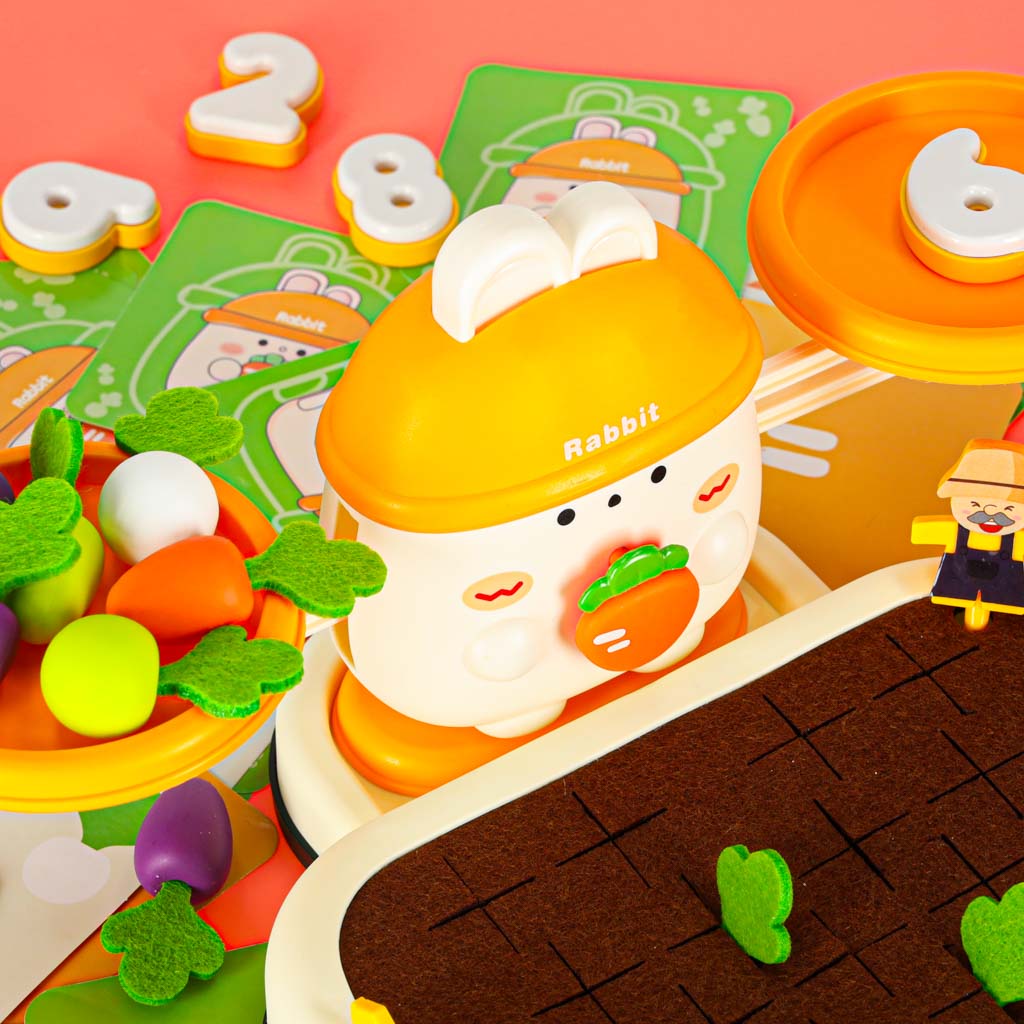 Armas jänes valitseb komplekti tipus, “valvab” tasakaalu. Laps saab porgandeid või muid esemeid kuhjata, püüdes tasakaalu säilitada või seda tahtlikult häirida, õppides samal ajal füüsika ja loogilise mõtlemise põhitõdesid. Komplektis on ka spetsiaalsed numbrid – igal numbril on vastav kaal, mis vastab kujutatud numbrile. See võimaldab väikelapsel katsetada, võrrelda kaalu ja õppida numbrilisi väärtusi praktikas! See mäng sobib suurepäraselt lugemise ja matemaatiliste põhimõistete õppimise toetamiseks.