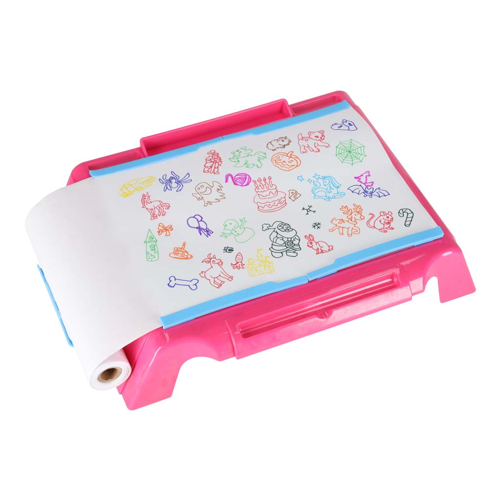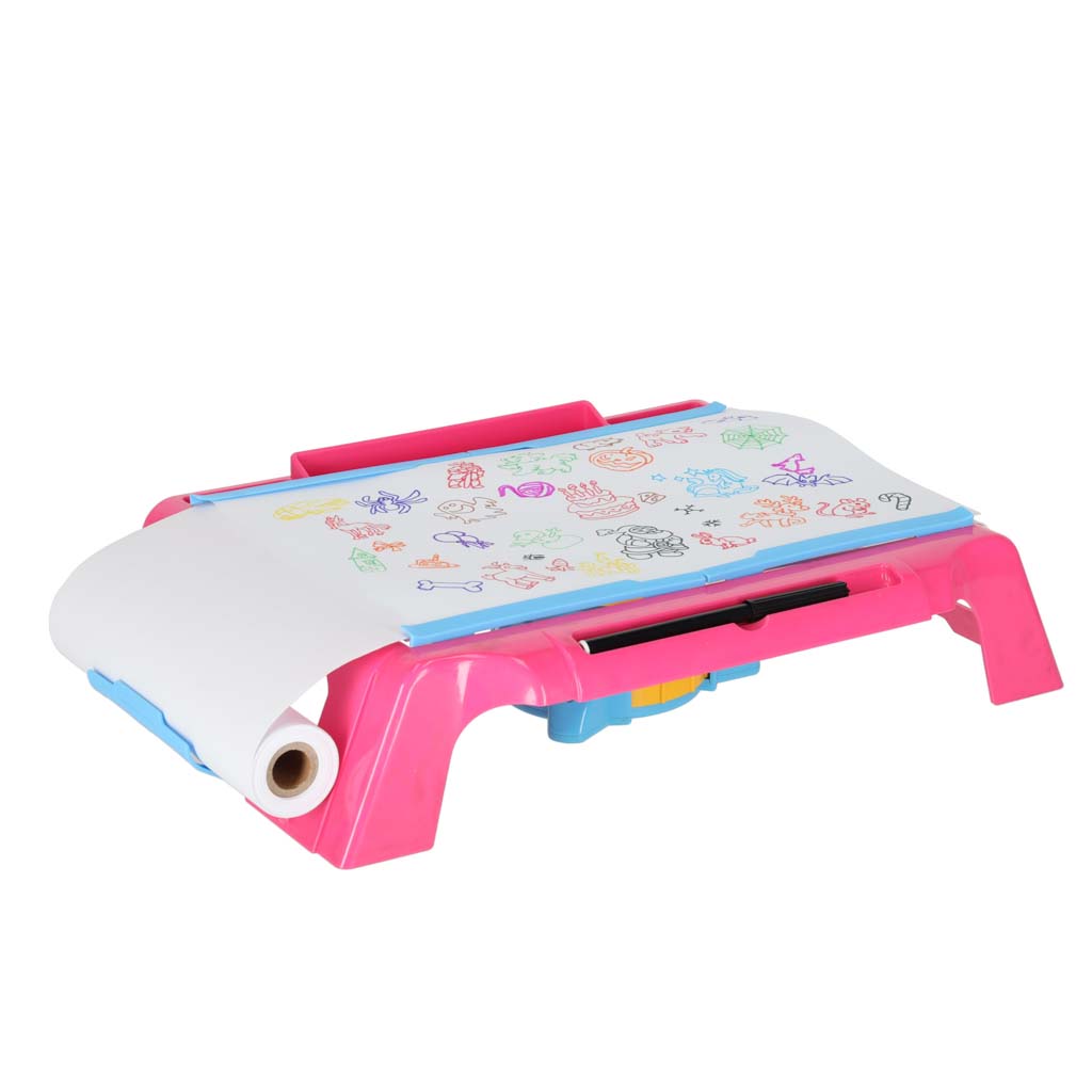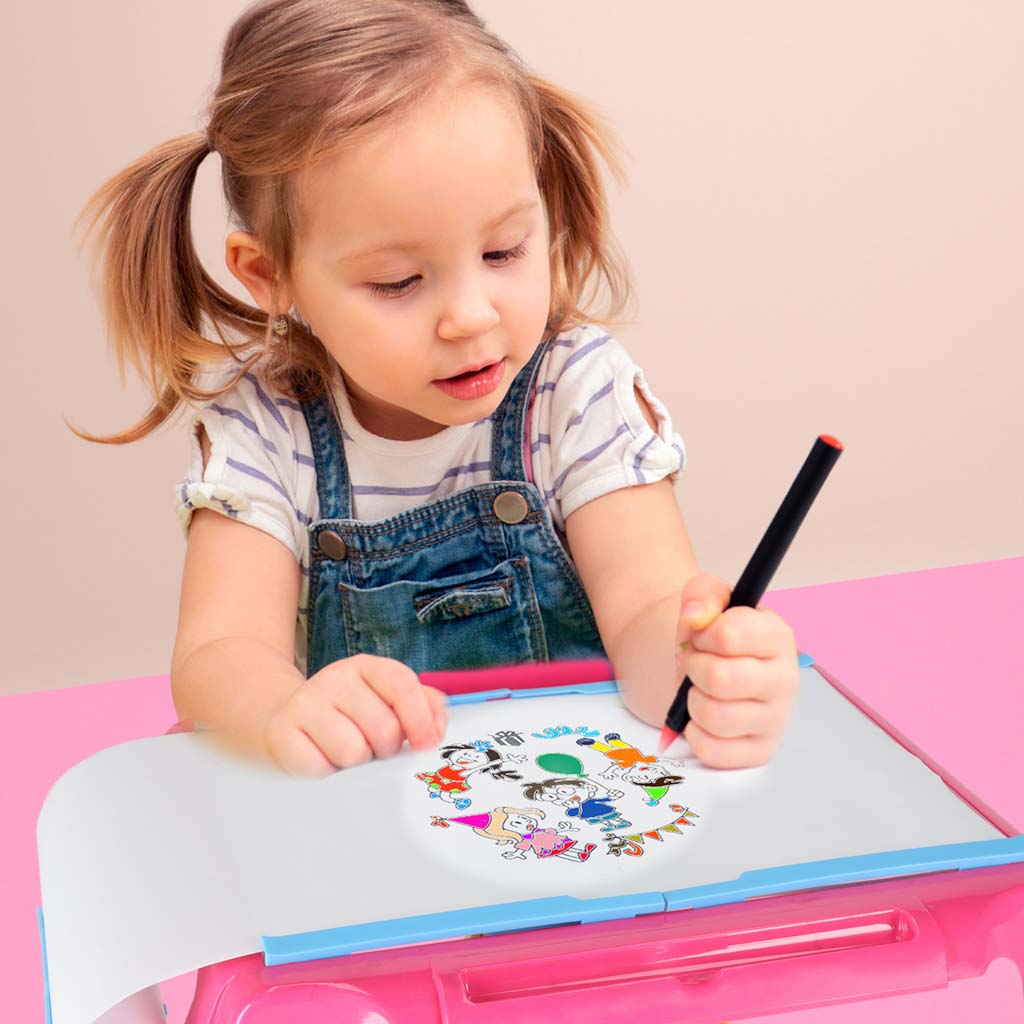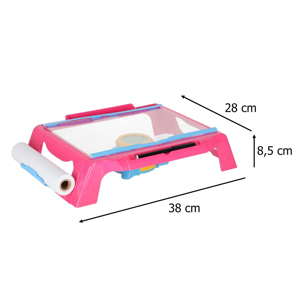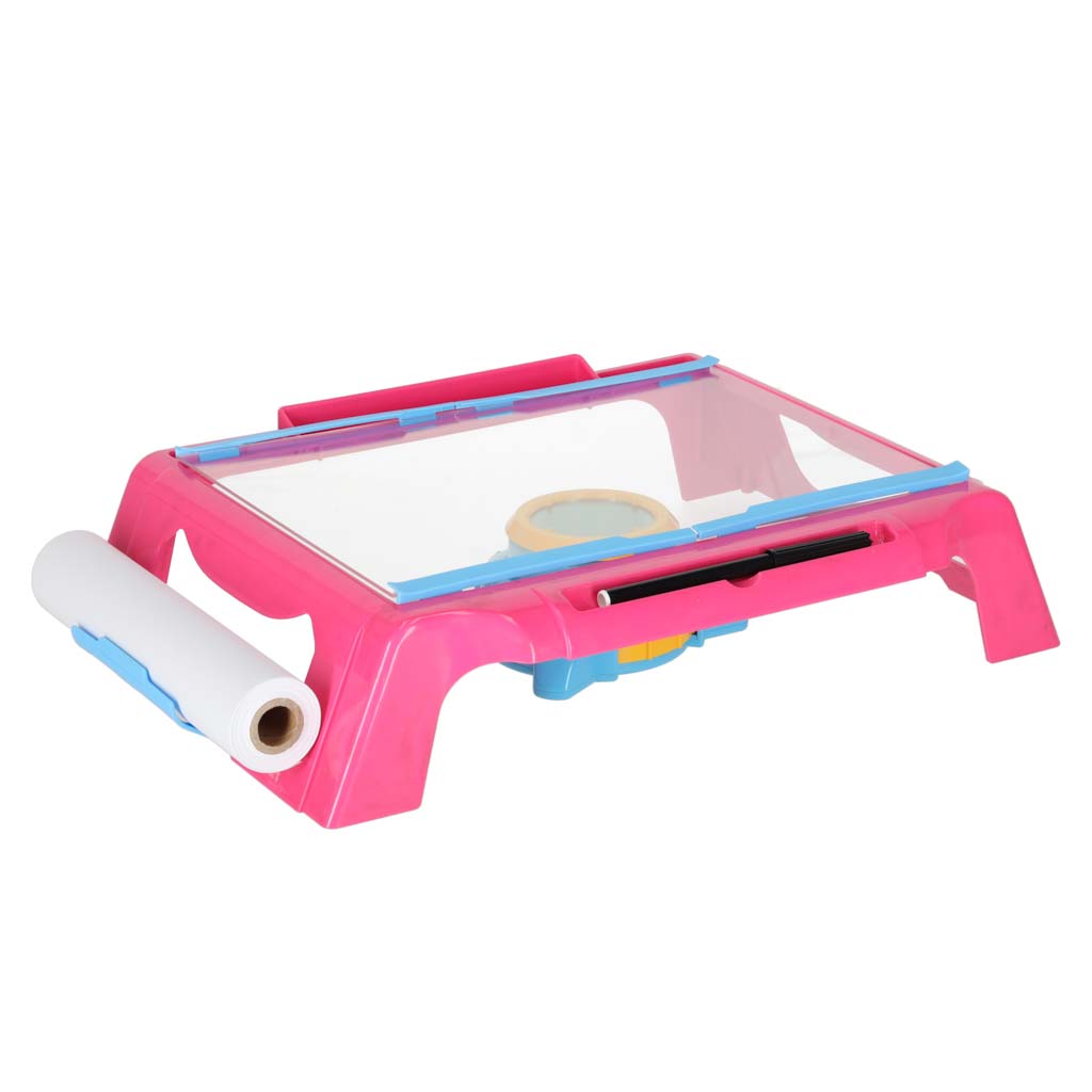 Kujundatud joonistamislaud koos projektoriga roosa
