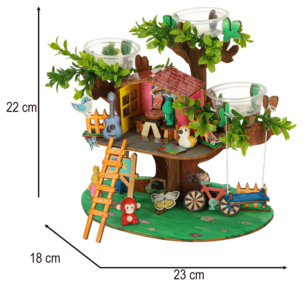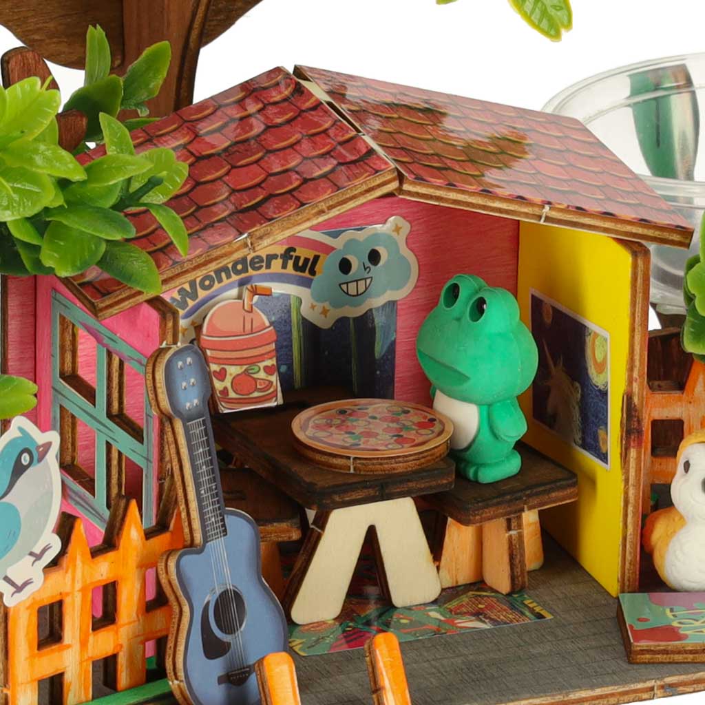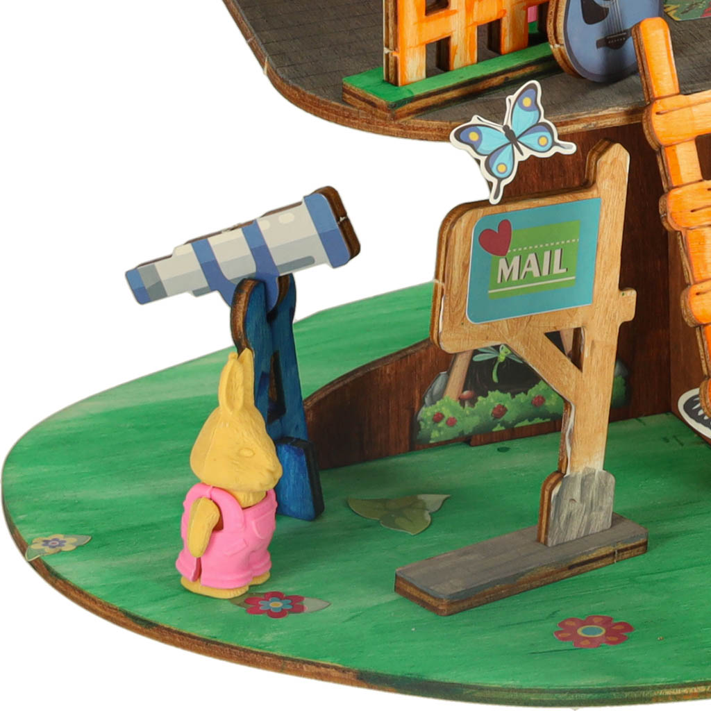 Komplektis on puidust tükid, mis tuleb omavahel ühendada, et moodustada stabiilne maja. Kaasas olevad värvilised värvid võimaldavad puitkonstruktsiooni täielikult isikupärastada. Neli värvilist figuuri lisavad kogu seadeldisele võlu ja inspireerivad looma unikaalseid, loomingulisi lugusid, milles puumaja saab unikaalseid elanikke.