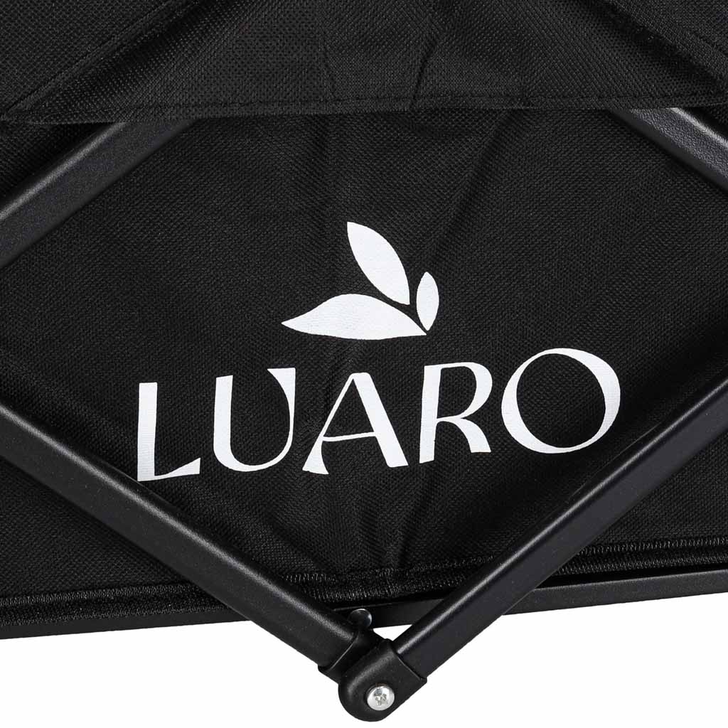 Käru toetub tugevale pulbervärvitud terasraamile, mis suudab kanda kuni 100 koormust.kg. Tugevdatud kangas tagab vastupidavuse hõõrdumisele, niiskusele ja intensiivsele kasutamisele – ja näeb ka pärast hooaega suurepärane välja tänu UV-kattele, mis kaitseb tuhmumise eest.