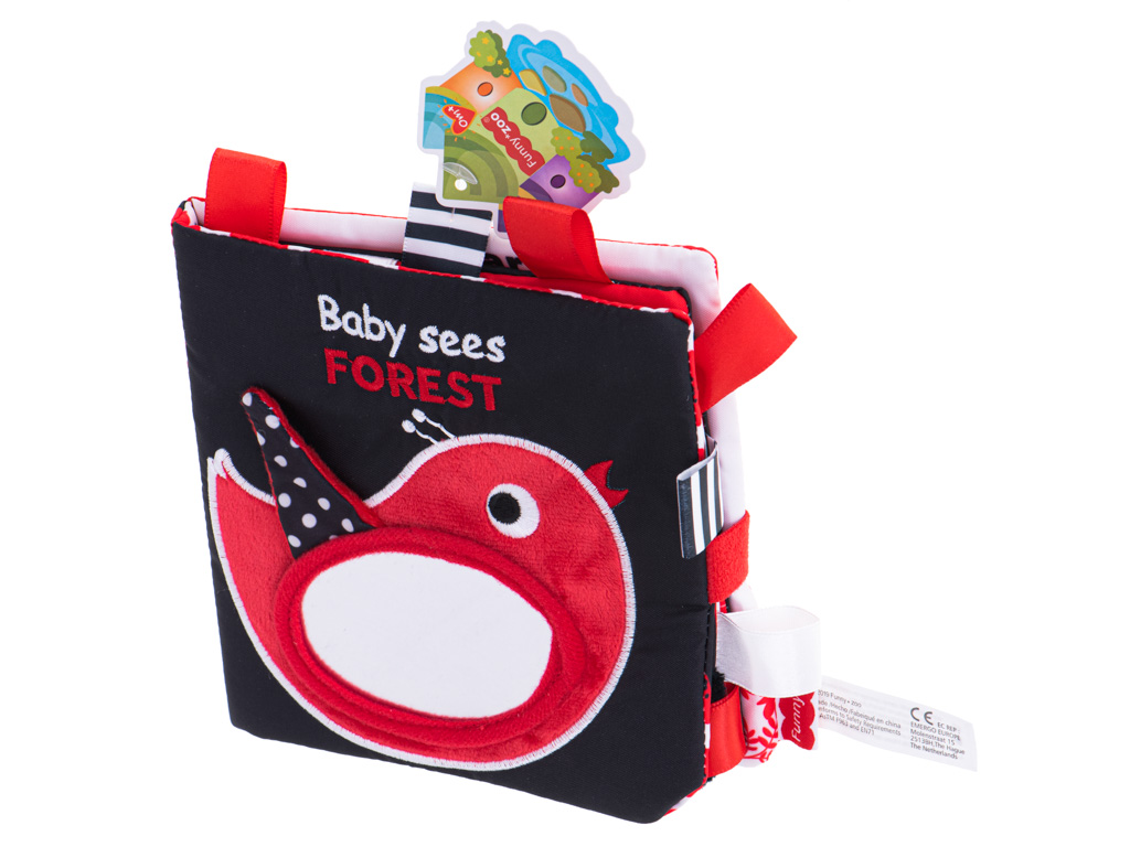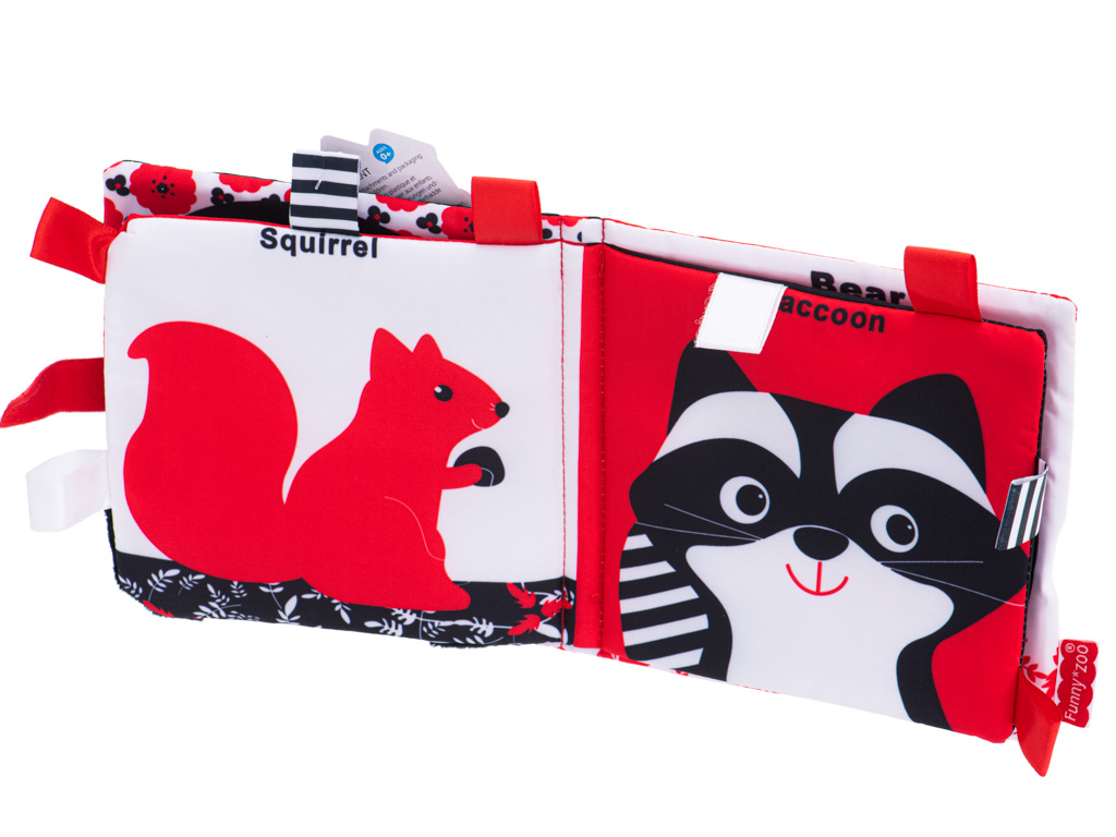 Kontrastsete mustritega maagiline kangasraamat sobib suurepäraselt lastele, kes alles hakkavad maailma avastama. Valged, mustad ja punased pildid on suurepärane sissejuhatus loomade tundmaõppimiseks.