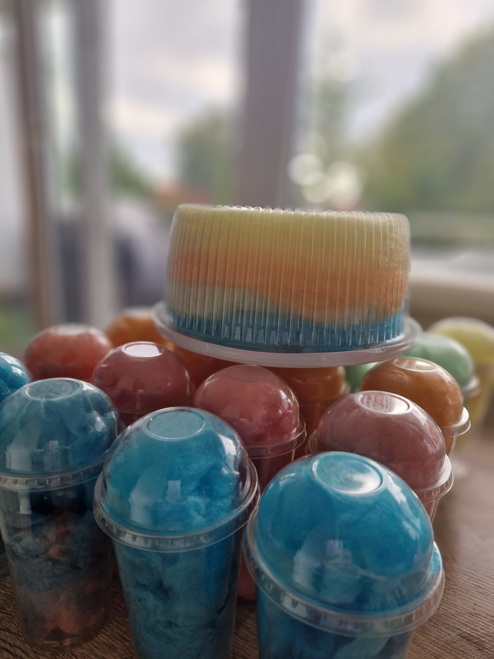 Koostisosad: suhkur, lõhna- ja maitseained, toiduvärvid: kurkumiin E100, briljantsinine E133, E172.