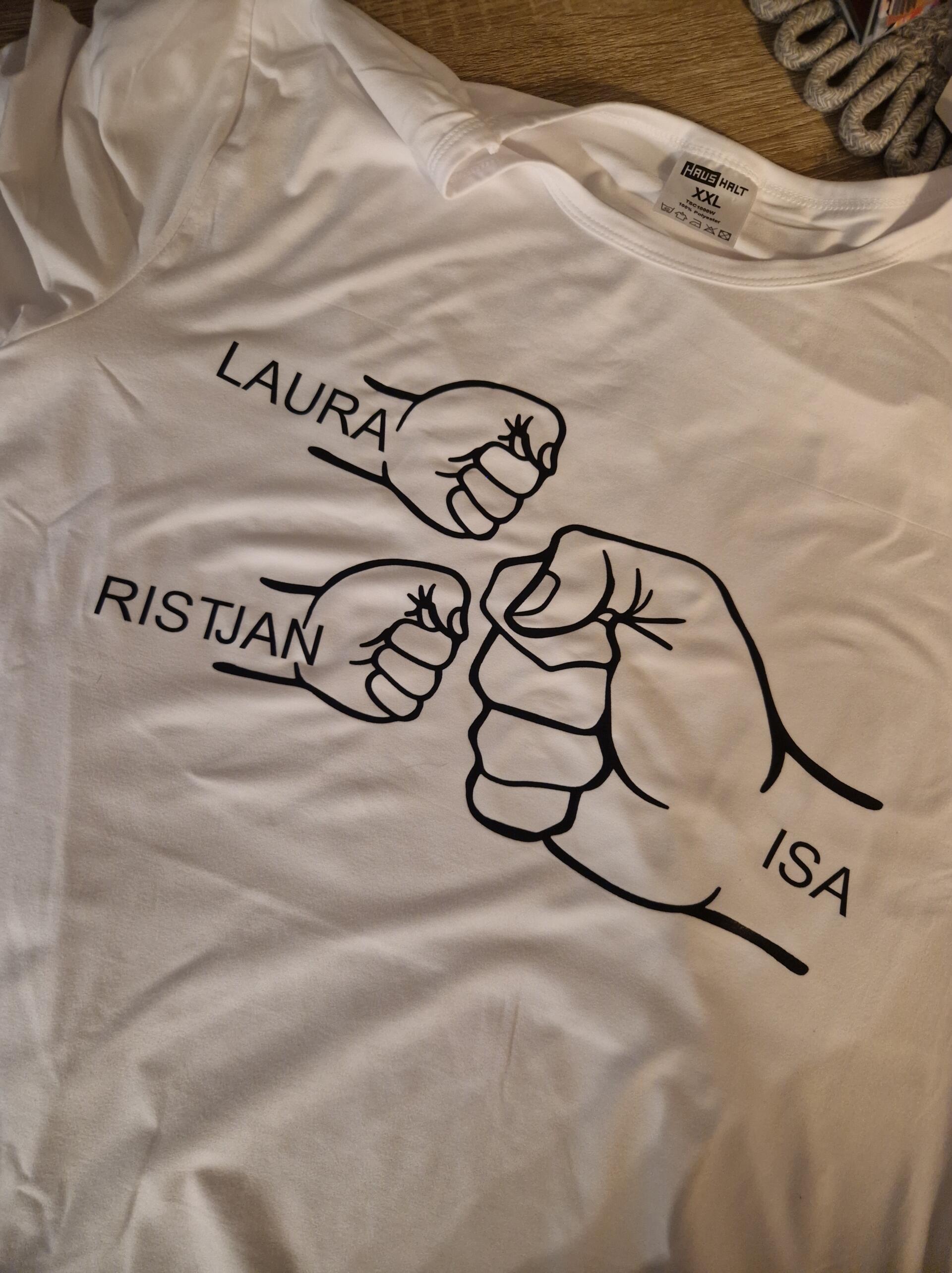 Toodet saab personaliseerida vastavalt Sinu soovile – lisada nimi, isa või vanaisa nimi, laste nimed ning soovi korral ka kassi või koera käpa koos lemmiku nimega. Nii valmib ainulaadne rõivaese, millel on eriline tähendus ja lugu.