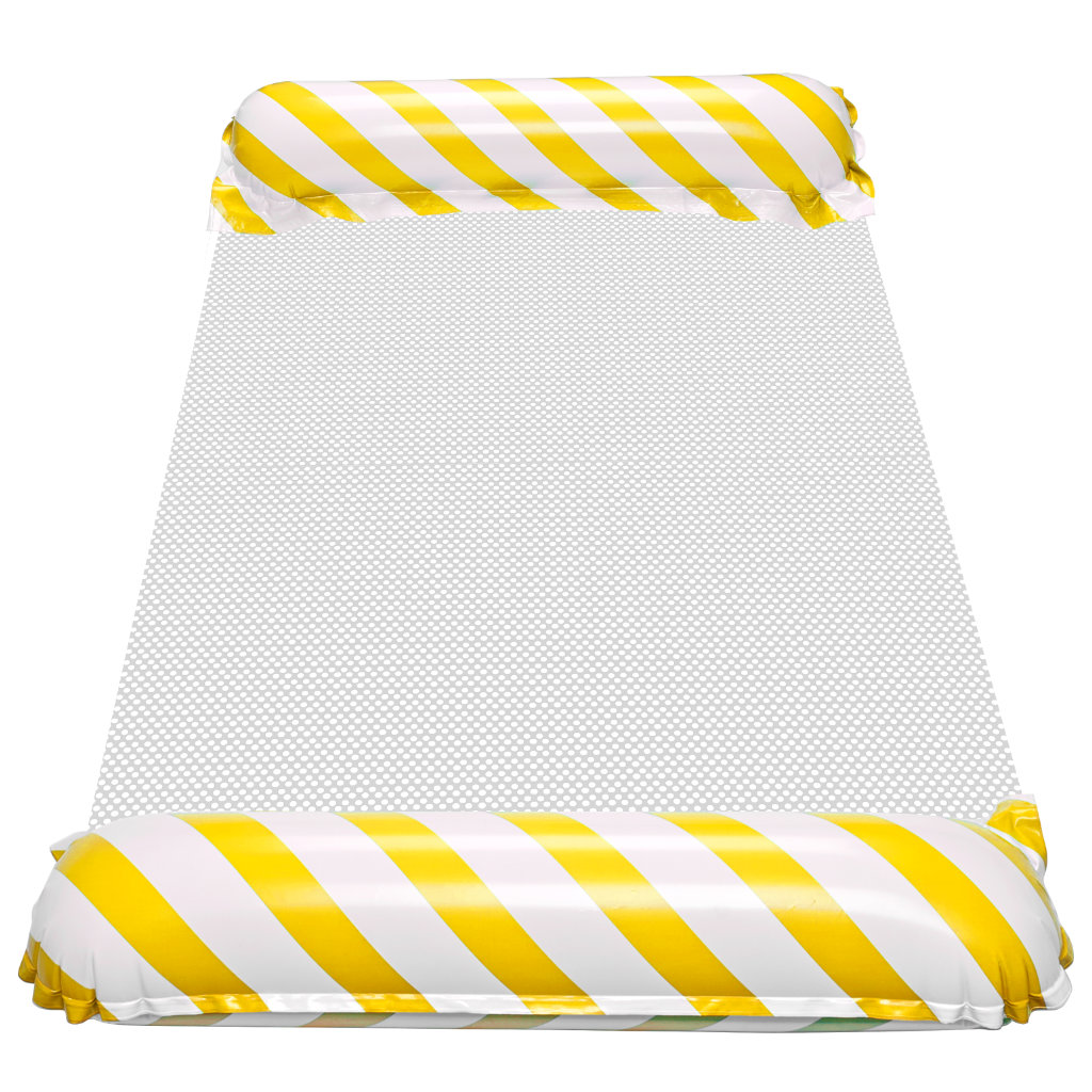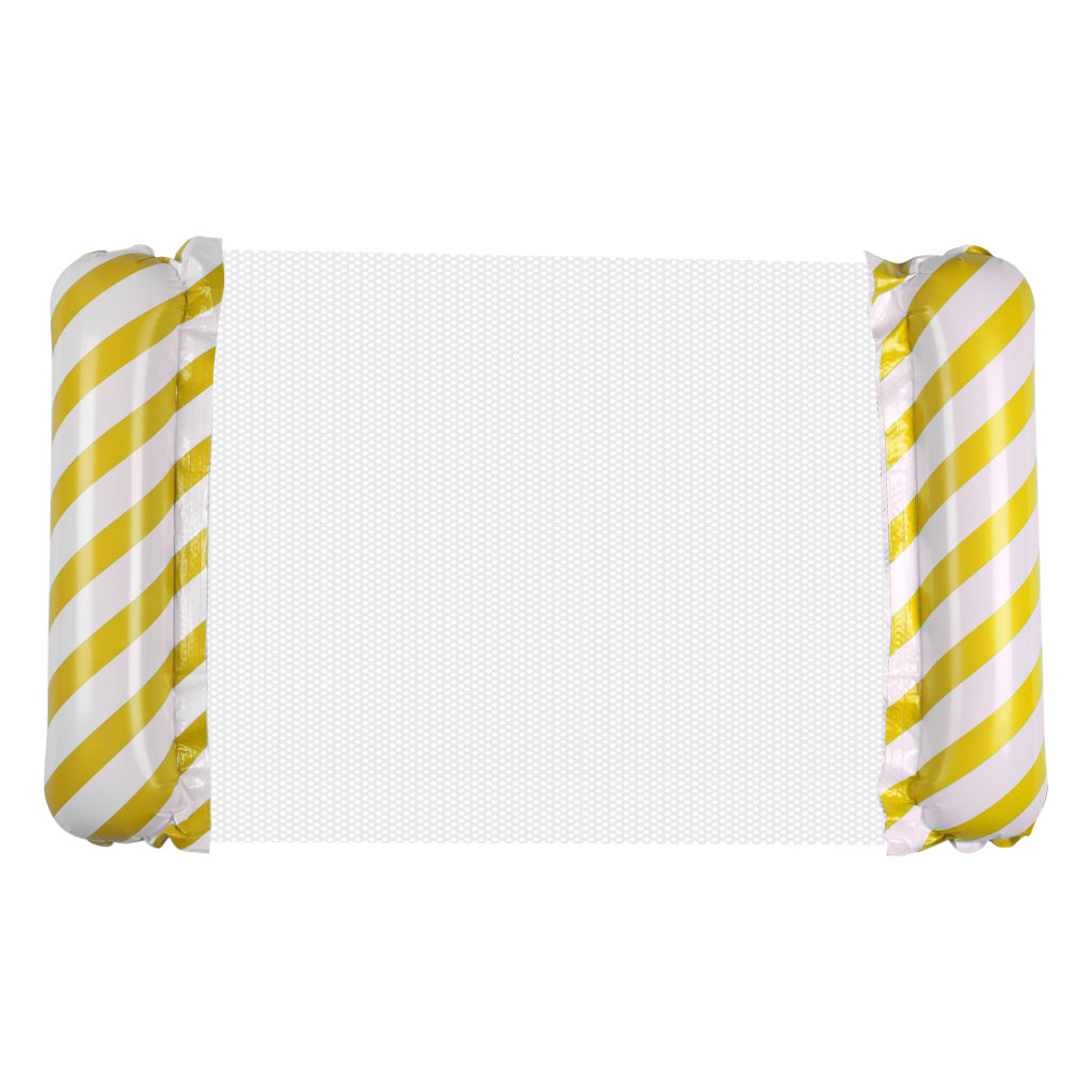 Valge ja kollane ujuv vesimadrats on loodud rannas ja basseinis lõõgastumiseks. Täispuhutavad küljed tagavad õige tasakaalu ja tugev võrk hoiab teie keha vee peal. Mugav lamamistool või ujuvtool? See madrats sobib erinevateks tegevusteks. Ujuta madratsil, et kogeda täielikku lõõgastust, mida ümbritsevad vesi ja suvine päike. Tehnilised parameetrid: Üldised mõõtmed: 1,5 kg: Pakend: Fooliumpakendi mõõtmed: 24 × 30 x 2 cm