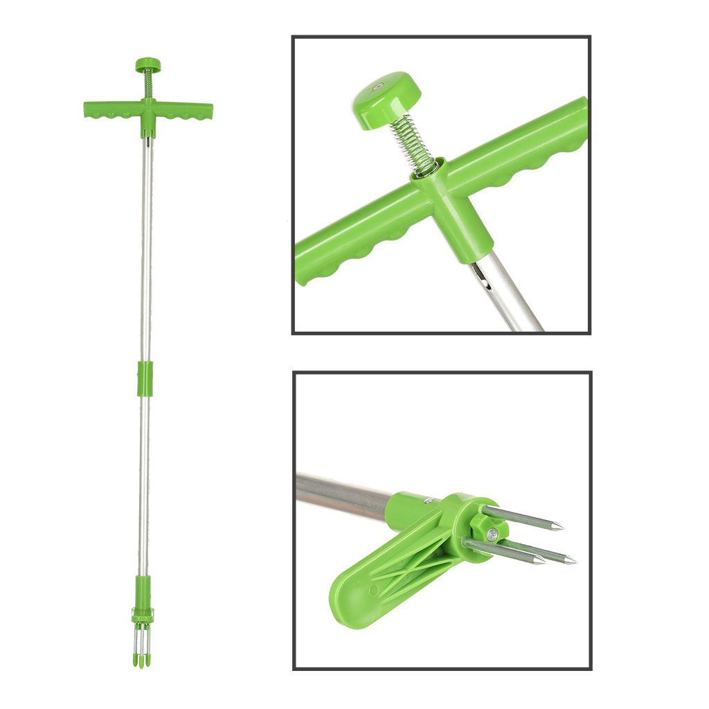 Seadme otsas on kolm tera, mis püüavad umbrohtu mitmest küljest ja võimaldavad seda välja tõmmata mitteinvasiivselt – st ilma lähedalasuvaid taimi kahjustamata. Ja seda kõike ilma kummardamata!