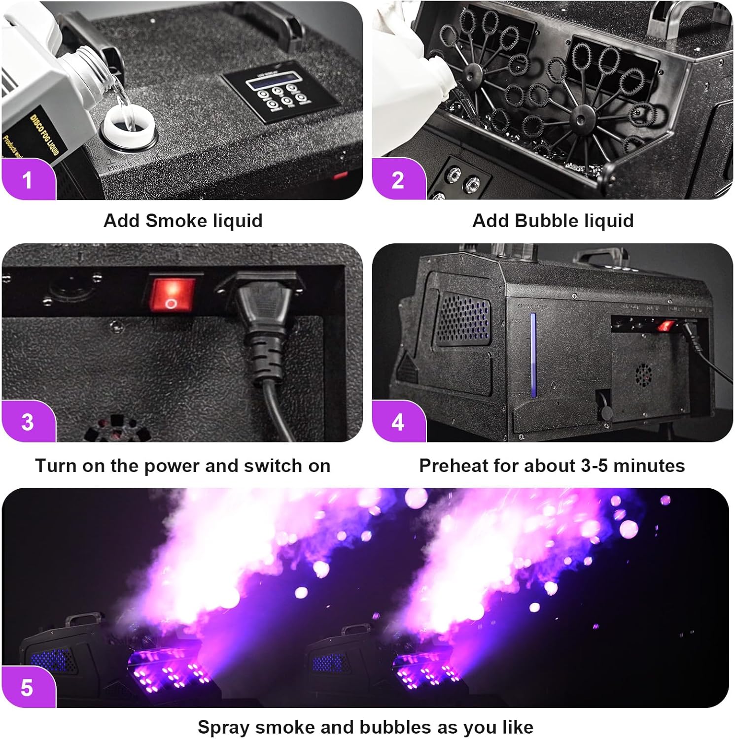 • 🔥 Unikaalne 2-ühes efekt: udu ja seebimullid tulevad masinast samaaegselt või eraldi – vali vastavalt vajadusele.