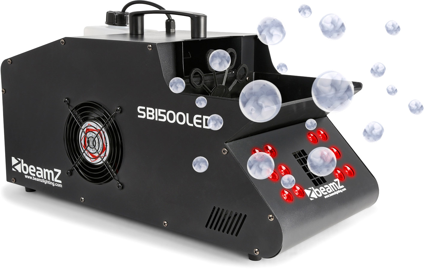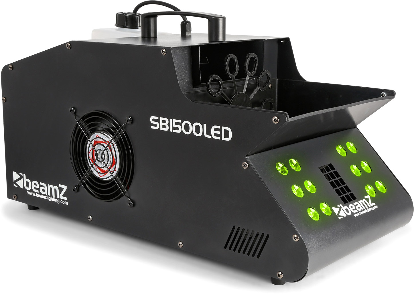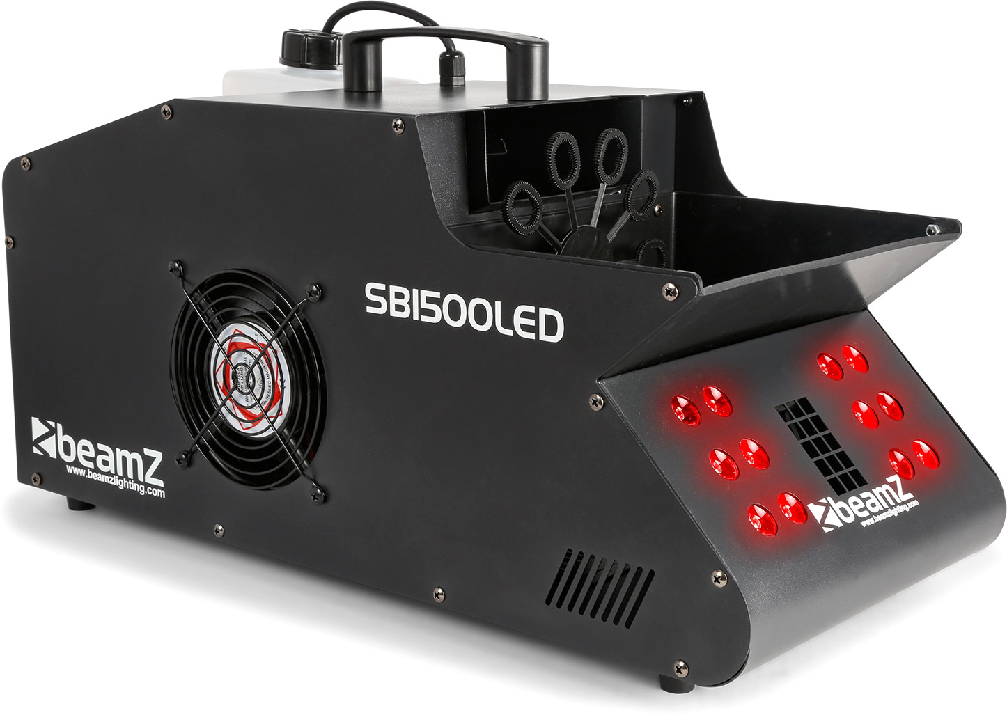 SB1500LED on udu, mullide ja 3-in-1 LED-ide kombinatsioon ühes korpuses. SB1500 masina ventilaator tekitab palju mullikesi, mis täituvad suitsuga iga minut, tekitades samal ajal ka ülesvoolu, mis paneb mullid kõrgele õhku tõusma. Sellel süsteemil on 12x 3W LED-id erksates värvides: punane, roheline ja sinine. SB1500 on lihtne laadida, seda on lihtne kasutada ja lihtne puhastada. Saate lõpus ei teki teil puhastamisega probleeme tänu vedeliku väljalaskeklappide süsteemile. SB1500-l on kaks käepidet ja sisseehitatud rattad, mis muudavad selle transportimise lihtsaks. Kuigi SB1500 saab kasutada enamiku mullivedelikega, on seda kõige parem kasutada koos beamZ Bubble Liquid (160 575) ja beamZ Fog Fluidiga (160 582), et pakkuda eriti rahuldavat ja kvaliteetset mullikogemust.