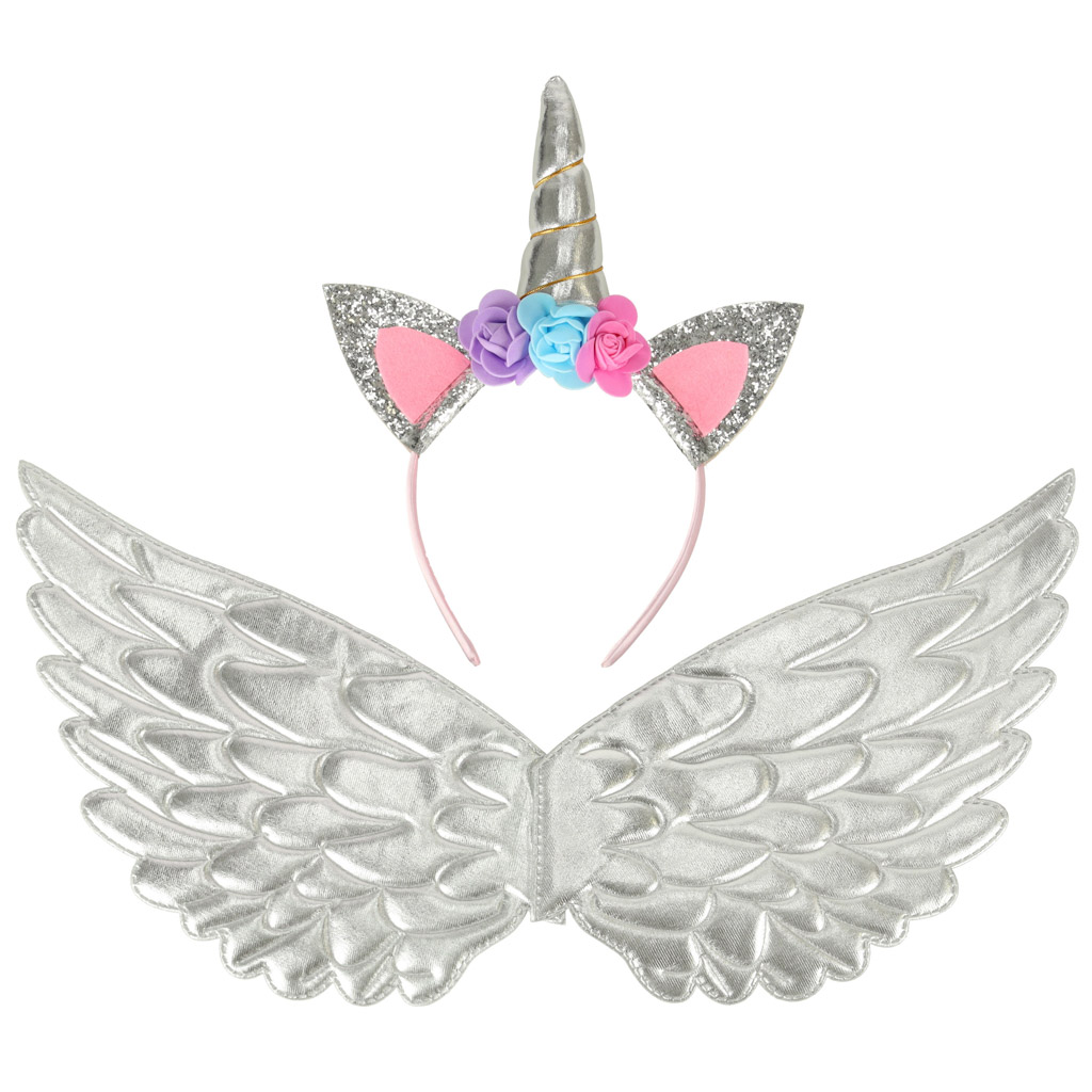 Ükssarviku kostüüm seelik peapael hõbedane