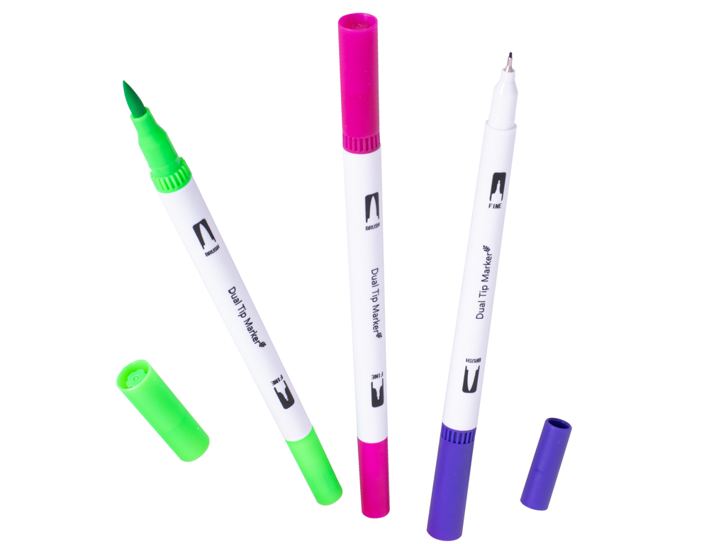 Igal markeril on mõlemas otsas kaks otsa – ühes otsas on 0,4 mm laiune peeneteraline pliiats täpse kontuurimise ja kirjutamise jaoks ning teises otsas on 1-2 mm laiune marker, millega saab kiiresti katta suuri pindu paberil!