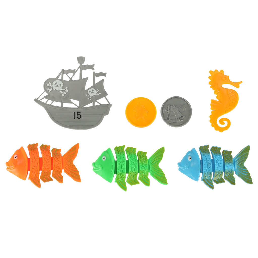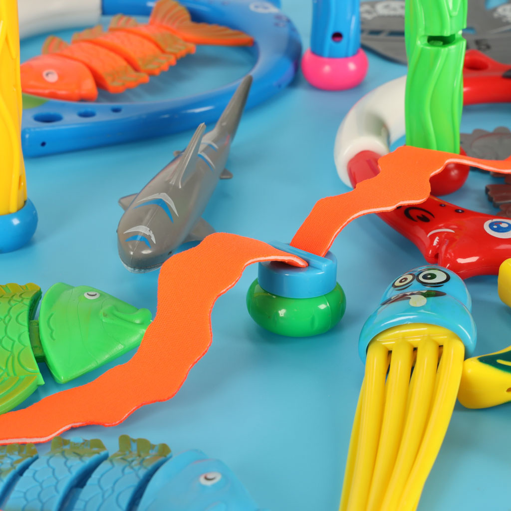 Basseini paigutatud kalad, merihobused ja kaheksajalg on kõik osa mängutegevusest, kus laps saab arendada osavust ja motoorikat. Komplekti kuuluvad sukeldumistorud, mis aitavad lapsel mänguasju veest välja õngitseda.
