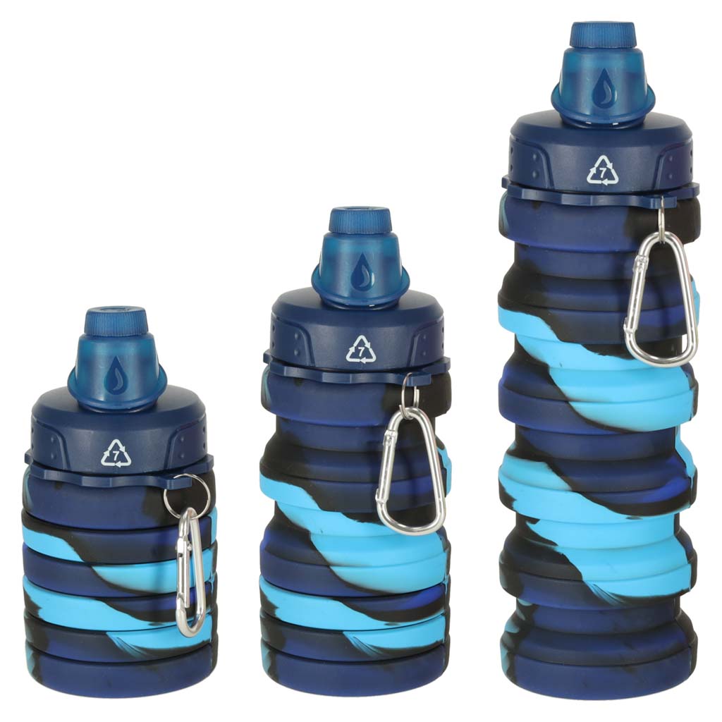 Veepudel silikoonist kokkupandav pudel käepidemega sport 500ml sinine