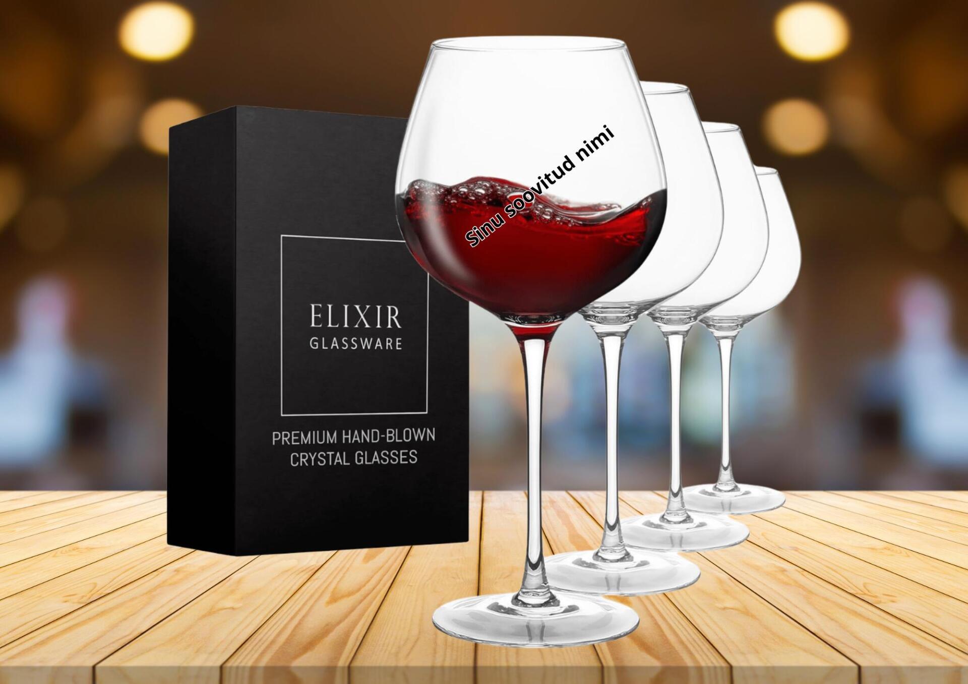 Elegantne ja ajatu läbipaistvast klaasist veinipokaal, millele saad lisada endale meelepärase nime või teksti. Täiuslik valik nii pidulikeks sündmusteks kui ka igapäevaseks veinin nautimiseks – stiil, mis sobib igasse hetke.
