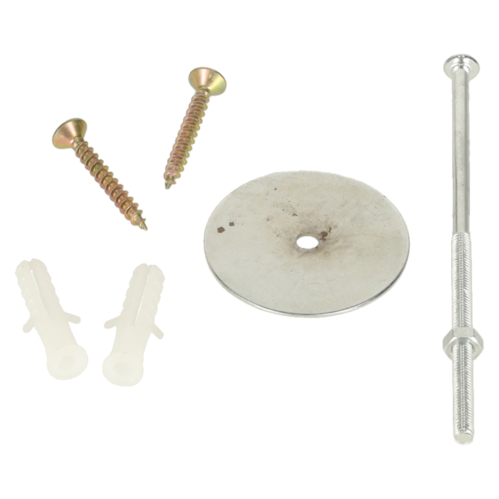 paigalduskomplekt: 4 cm läbimõõduga rõngas, 10 cm pikkune kruvi ja mutter ning 2 kruvi koos 3 cm pikkuste tihvtidega.